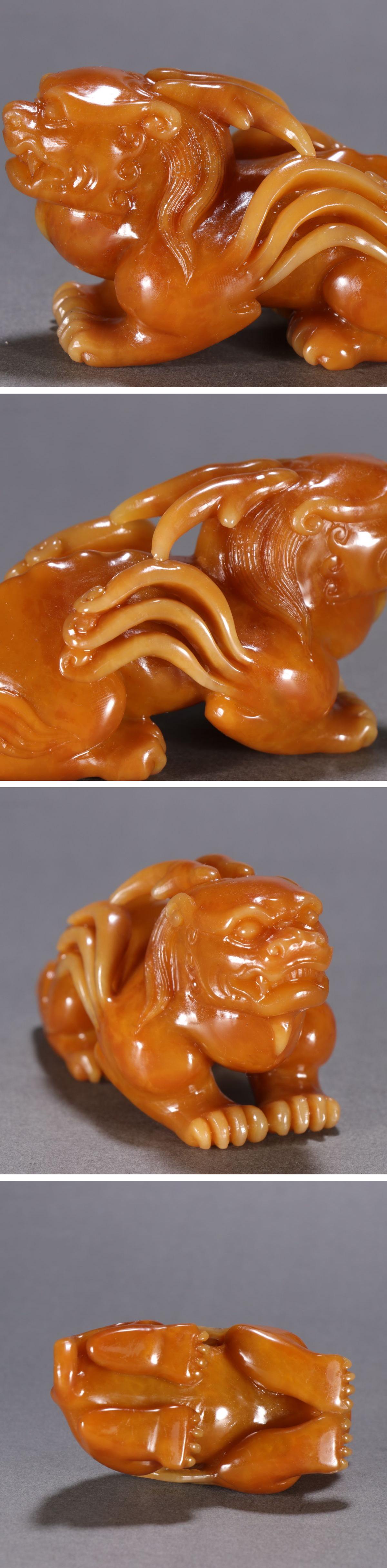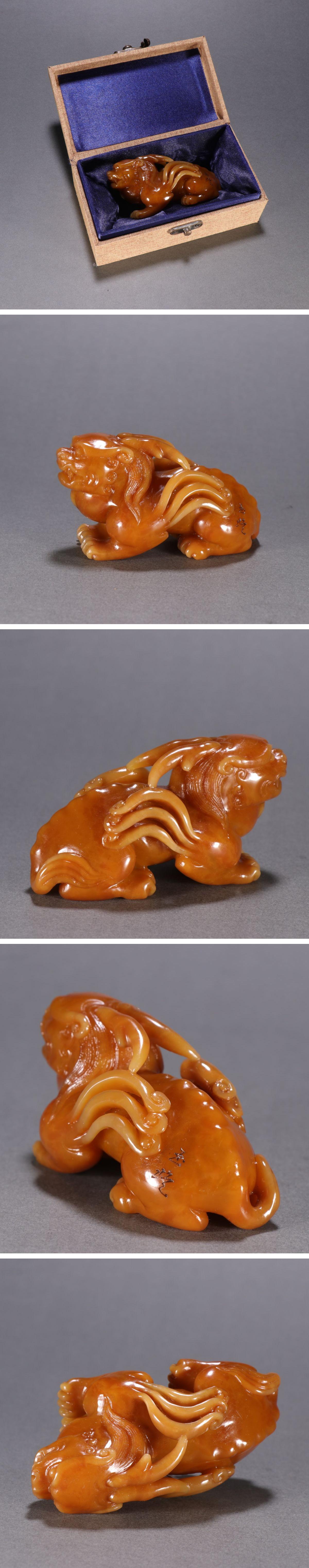 【清】某有名オークション購入 清時代 寿山田黄石 瑞獣紋彫り物 古置物 古擺件 古美術 時代コレクション7L9-BY7