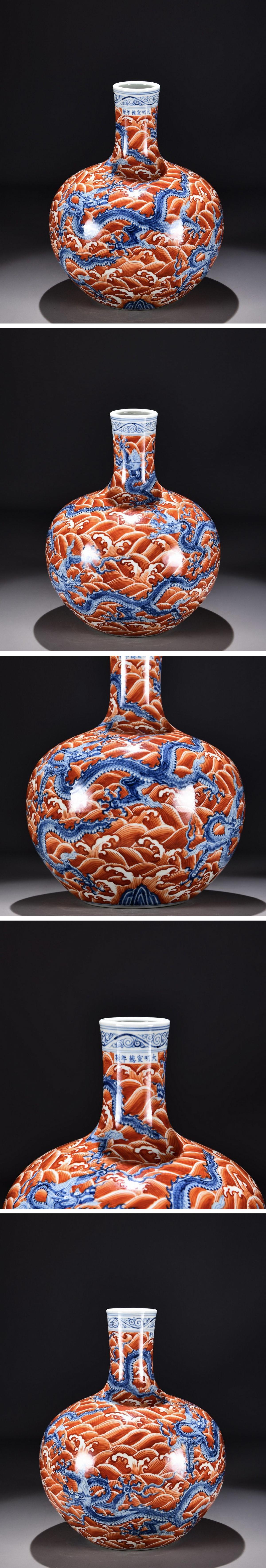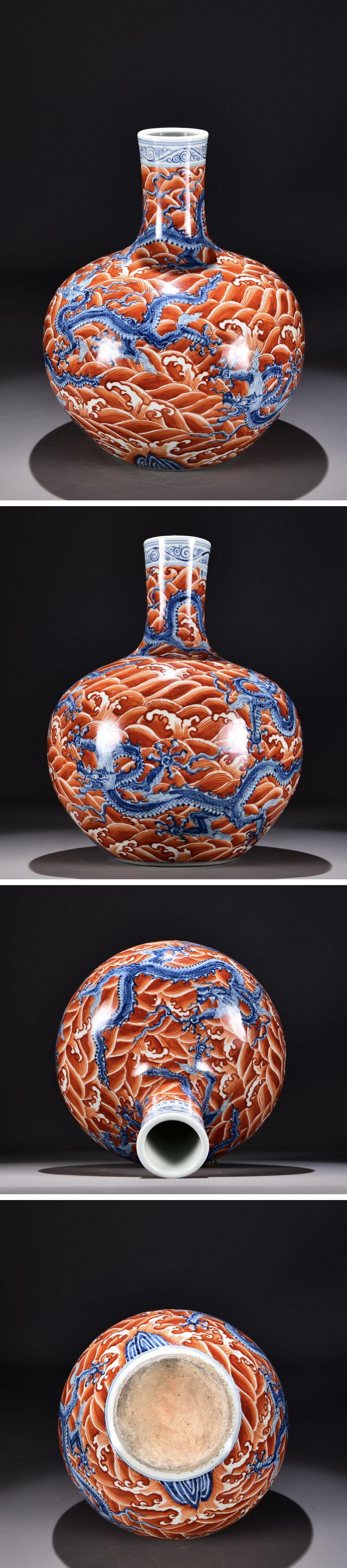 【清】某有名オークション購入 明時代 大明宣徳年製 海水龍文天球瓶 官窯 古置物 古擺件 古美術 時代コレクション7L9-TE5