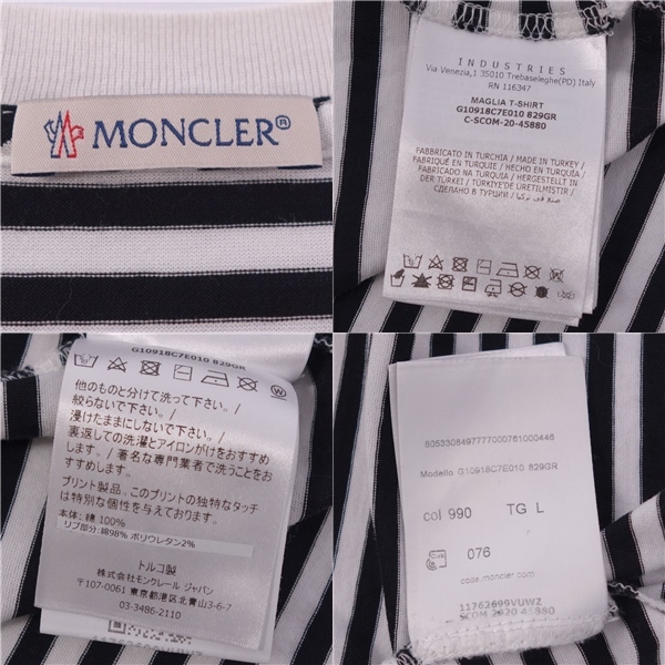 | 美品 モンクレール MONCLER Tシャツ 2020 カットソー ショートスリーブ 半袖 ボーダー コットン メンズ L ブラック |