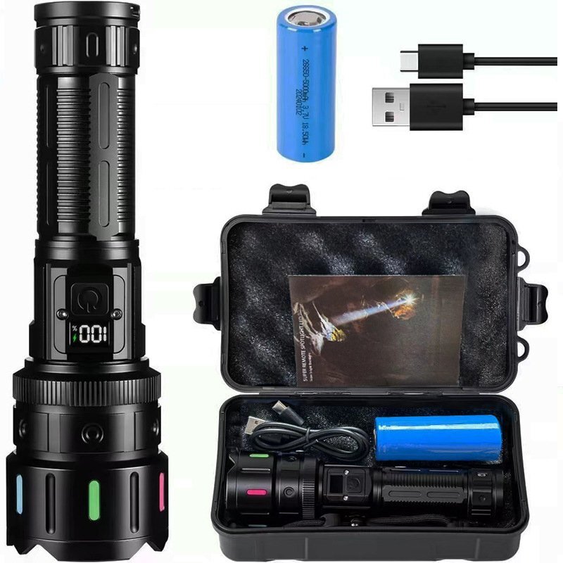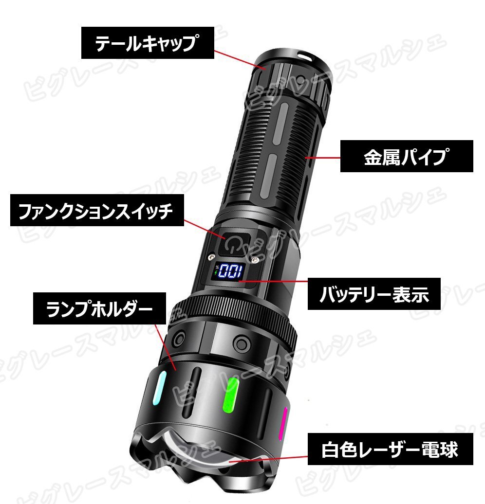 ■5000mahの大容量、20W白色レーザー懐中電灯、5速切り替え、日常生活防水防雨、アウトドア、緊急時、夜釣り、冒険など様々なシーンでの使用に適しています。