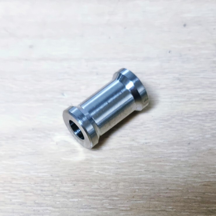 | ■ 商品構成 ① チタン合金 M6x20mm スペーサー x 1個 外径 12(10)mm、内径 6mm、長さ 20mmのスペックです。 ※複数購入をご希望の方は、購入時に数量を指定してください。 オークションシステム上出品数量の最大個数が9個ですので、 ホンダ NSR250に多用途利用するため、10,15,20,25mmの長さで製作しました。 必ずしもホンダのNSR250ではなくても、