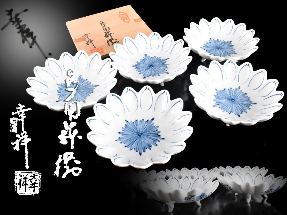 | 商品名 | 【雲】某名家買取品 有田 幸祥 染付 菊絵 三足 輪花鉢 5客 在銘 共箱 古美術品(銘々皿 向付 小鉢 懐石料理道具)Y7100 LTfdew |