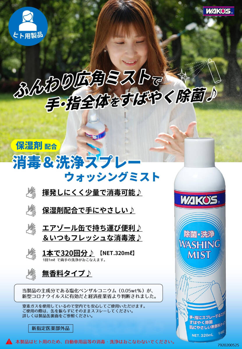 | ワコーズ ウォッシングミスト 和光ケミカル WAKO'S ウォッシングスプレー 無香料タイプ A490 消毒&洗浄スプレー 320ml 塩化ベンザルコニウム 消毒スプレー | |