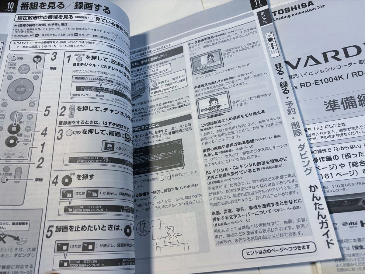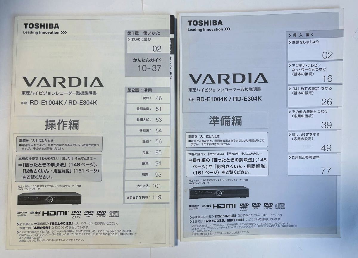| 取扱説明書b 東芝ハイビジョンレコーダー RD-E1004K/RD-E304K 準備編、操作編 | |