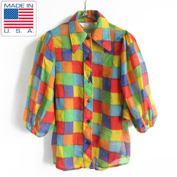 | 商品名 | USA製 Sears シアーズ ビンテージ マルチカラー ブロックチェック ブラウス/D143 |