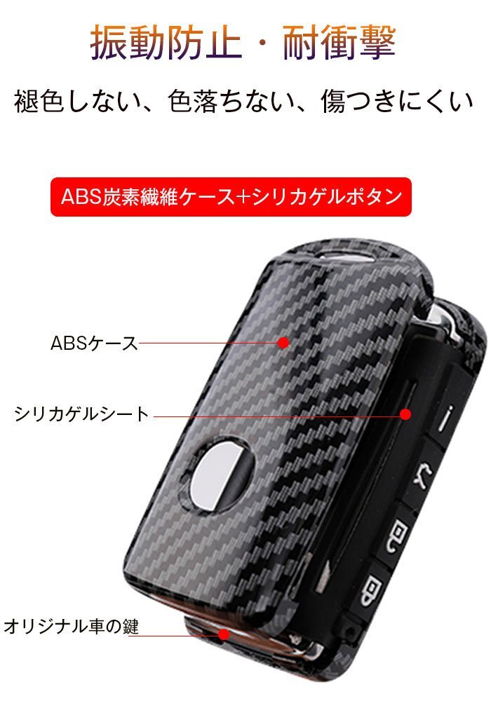 【高級な質感】:光沢のあるカーボン柄のデザインが、より高級感な印象とシンプルなカッコよさとラグジュアリー感。外枠のカーボン柄カバーがスマートキーへのフィット感もバッチリ。