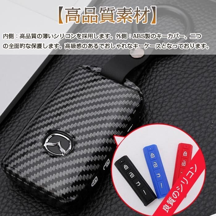 Mazda 対応 マツダ スマートキー ケース 専用 キー ケース キーカバー キーホルダー シリコン+ABS カーボン柄 【Aモデル/ブラック】