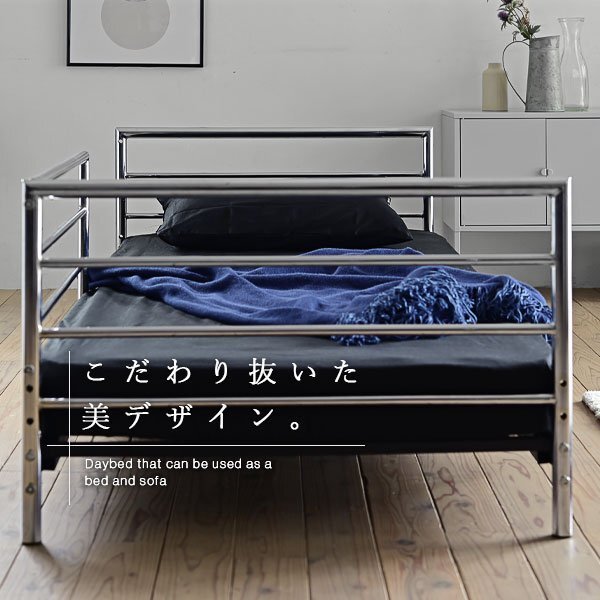 | クールなデザインが印象的なセミシングルショートのデイベッド。 コンパクトで抜け感のあるデザインなのでワンルームなどに置いても圧迫感がありません。 ベッドとしてもソファとしてもお使いいただけます。 |