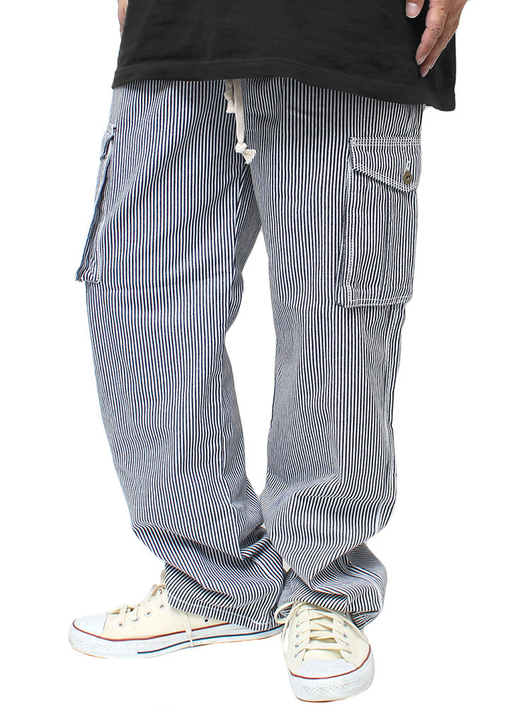 | 商品名 | 【新品】 4L ヒッコリー デニム カーゴパンツ メンズ 大きいサイズ ゆったり ワイド ウエストゴム デニムパンツ ジーンズ |