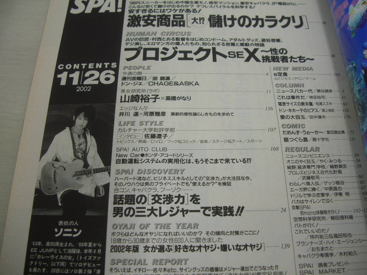 SPA! スパ 2002年11月26日発行 ソニン 表紙 ドン・ジエ CHAGE&ASKA 山崎裕子・グラビア 井川遥×河原雅彦(対談)
