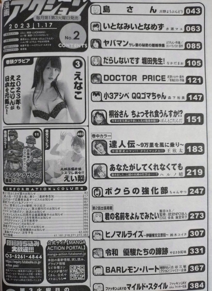 「漫画アクション 2023年1月17日号 No.2(双葉社)」| 出价者 | 信用 | 价格 | 时间 |