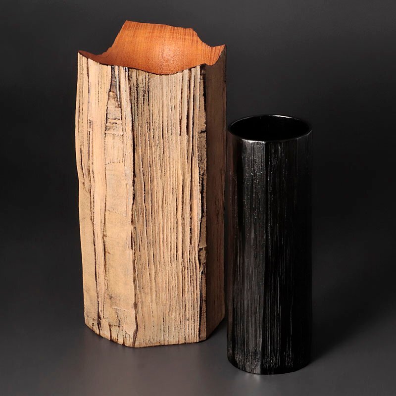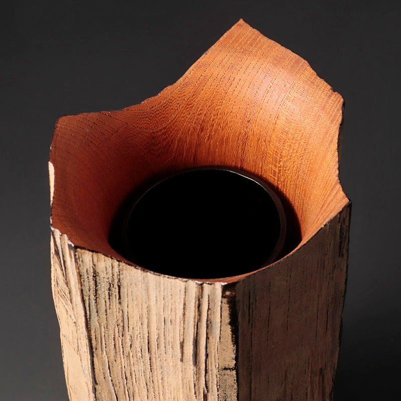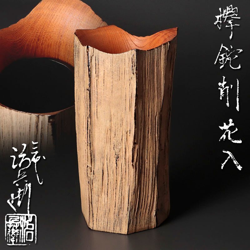 | 【古美味】三代村瀬治兵衛 欅鉈削花入 茶道具 保証品 |