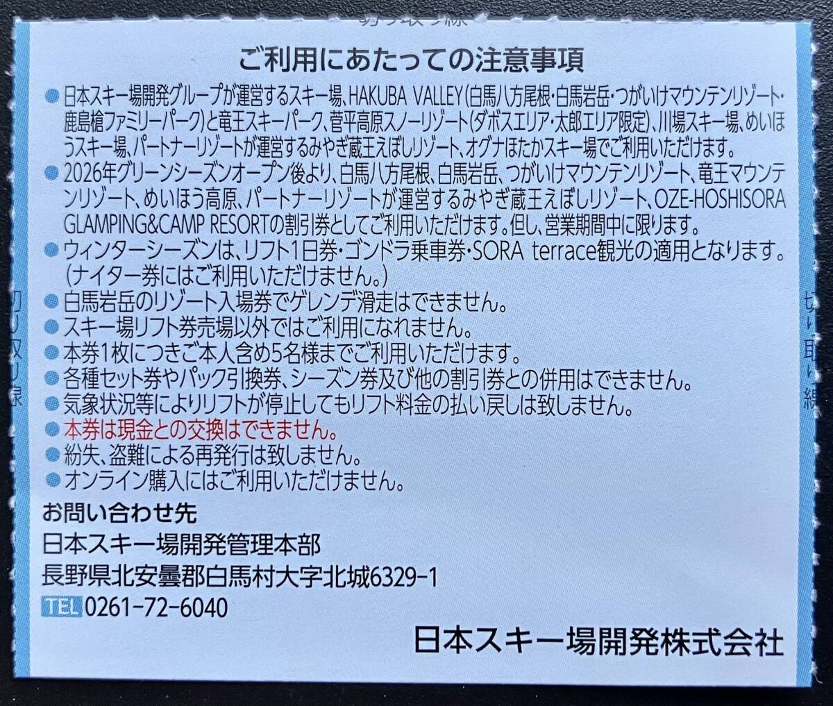 | 日本スキー場開発 スキー場リフト利用割引券1枚 | |