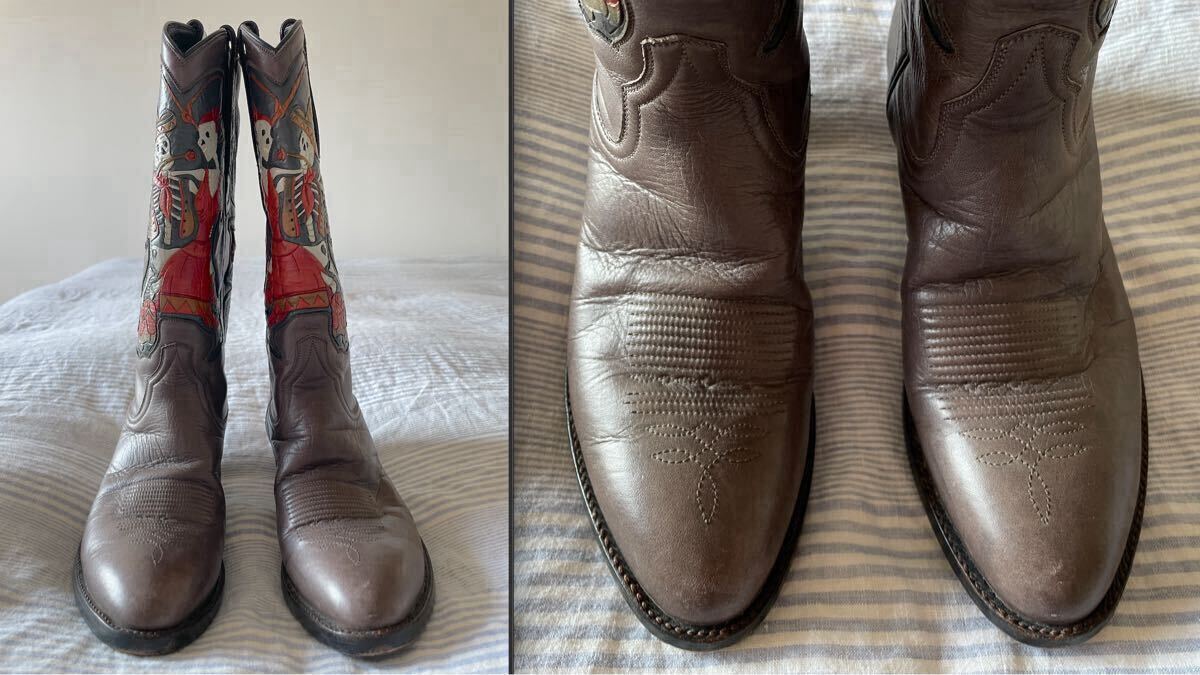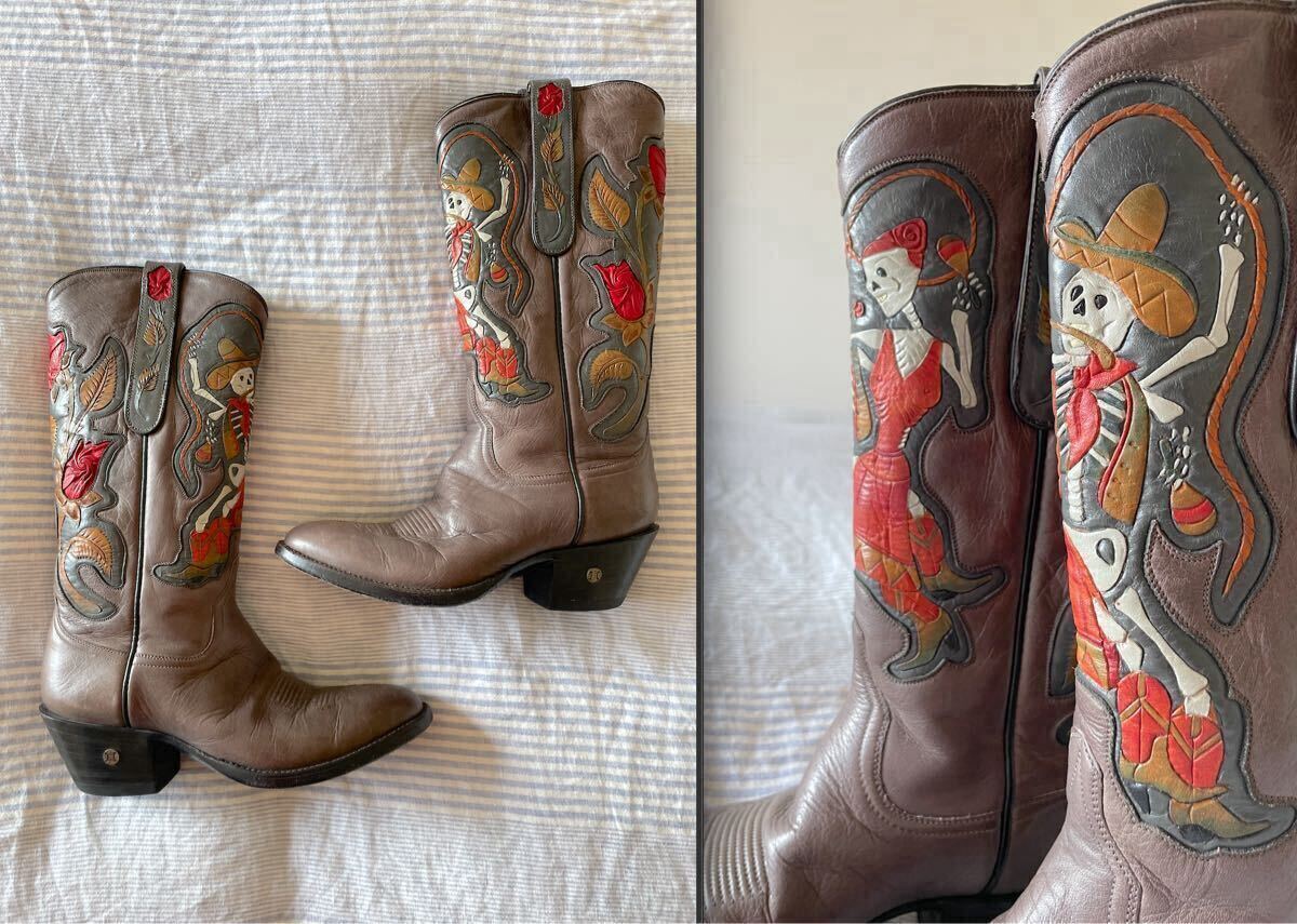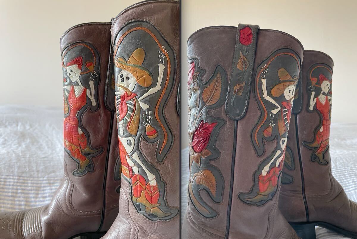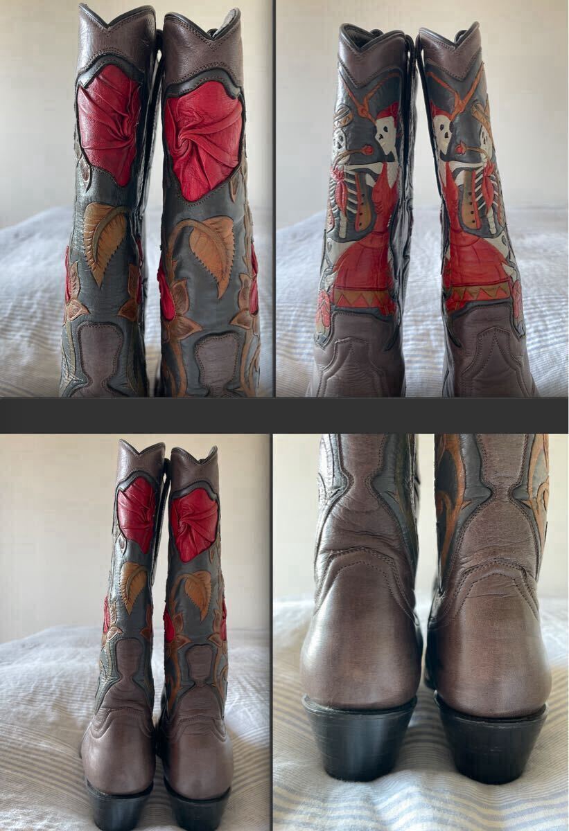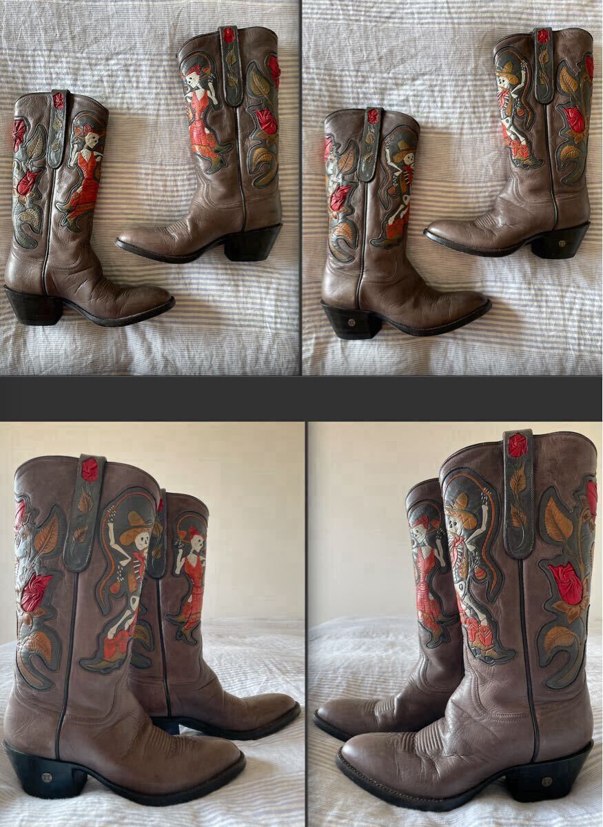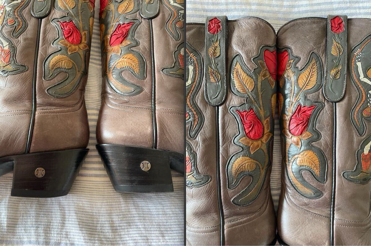 刺繍デザインが特徴的なグレーのウエスタンブーツ。| 出价者 | 信用 | 价格 | 时间 |