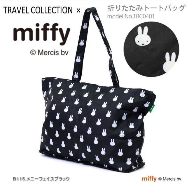 送料無料 ミッフィー トートバッグ miffy 折りたたみ サブバッグ キャリーオン レッスンバッグ マザーズバッグ メニーフェイスブラックO158