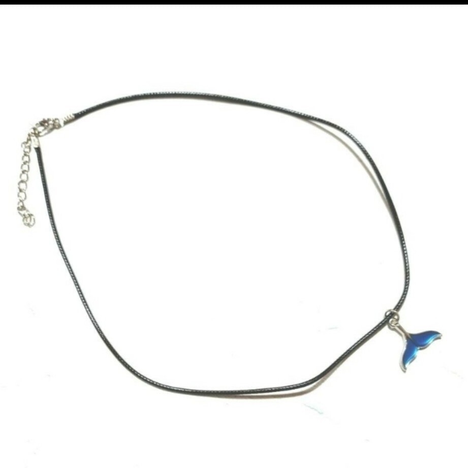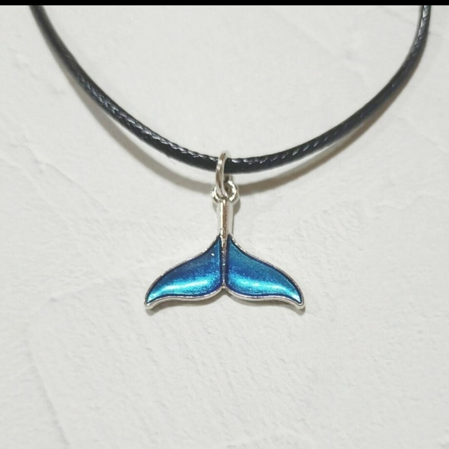 幸運 くじら ネックレス シルバー ホエール イルカ チョーカー 海 マリン 夏 鯨 クジラ ラッキー 人魚 フェイクレザー ②
