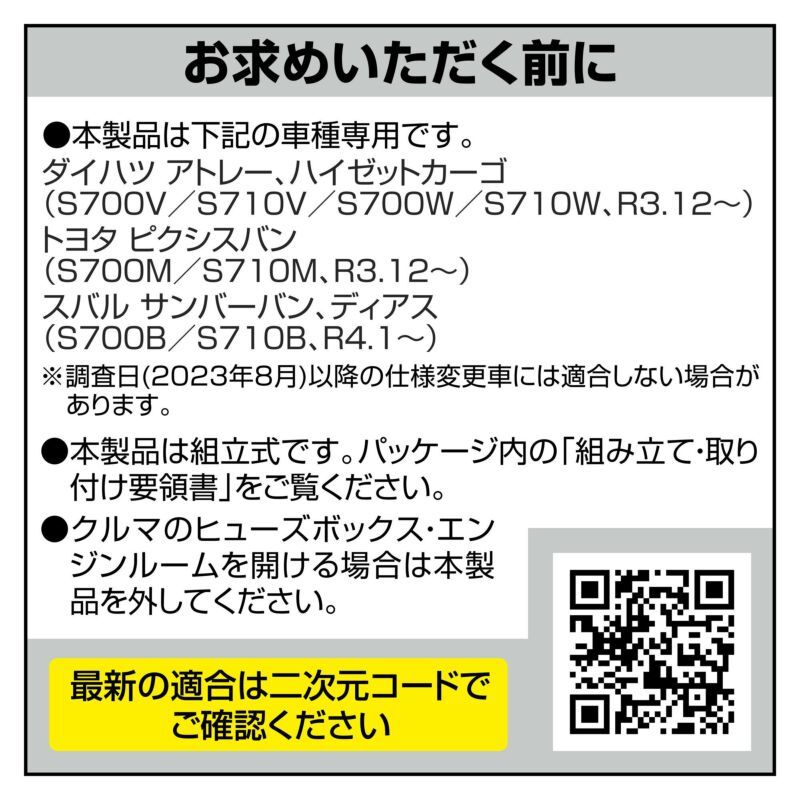 ダイハツ アトレー、ハイゼットカーゴ(S700V・S710V・S700W・S710W、R3.12〜) トヨタ ピクシスバン (S700M/S710M、R3.12〜) スバル サンバーバン、ディアス (S700B/S710B、R4.1〜) |