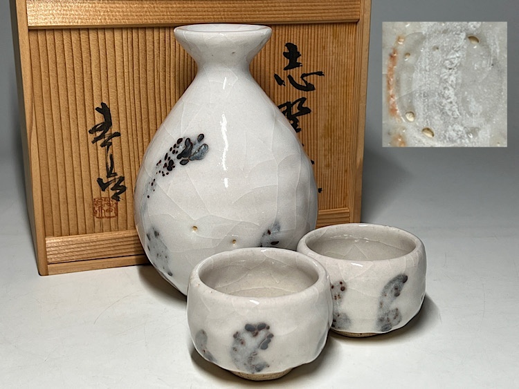 加藤春鼎作 志野焼 酒器セット 共箱 共布 ◆商品詳細 寸法(約):徳利:5.8x10.4x4.8(高×幅×口径cm) 御猪口:5x6.4x5.6(高×幅×口径cm) ※寸法に若干の誤差が生じる場合もございます。 少し汚れ、貫入、箱にシミがありますので、 ご承知の上入札お願いします。 状態等画像にてご確認の上ご入札よろしくお願いいたします。 ◆発送先等のご連絡とお支払いについて ※発送先等のご連絡 落札時から48時間以内にお願い致します。 ※お支払 かんたん決済の期限内にお願い致します。 複数点落札時にまとめて取引の場合(72時間内)に、 まとめて取引の取引手順(落札者方の操作)を参考にお願い致します。 梱包したサイズを測って、地方によって送料を決めますので、よろしくお願いします。 ◆掲載画像について ※画像は現物を撮影しておりますが、照度、遮光、モニターによっては実物と 色目が異なって見えることがありますのでご注意ください。掲載画像では確認 できない傷や汚れがある可能性もございます、あくまで 中古品であるということをご承知の上、御入札をお願い致します。 ◆補償について 商品到着後はすぐに状態の確認をお願い致します。 商品の破損等がございまし たら、箱や梱包材など全てそのままの状態で保存し、お早めにご連絡ください。 (到着日から一週間以上経過、梱包材の廃棄済み等の場合、保証は致しかねます のでご注意ください。) ◆返品について 思っていたイメージと違う、などのお客様主観による返品はお受けできません ので、予めご了承ください。ノークレーム、ノーリターンでお願いします。届 いた商品が商品説明と著しく異なる場合(寸法、キズ記載ミスなど)のみ承り ます。早めにご連絡ください。 ◆注意事項 当方の希望価格と隔たりがある場合は、終了前にやむなく取下げさせて頂く場 合がございます。 ※商品ご落札翌日から4日間以内にご連絡が取れない場合は、入札取消の処置を 取らさせていただく場合がございます。 ※評価の悪い方は取り消す場合がございます。 ※原則として当方の不備以外のキャンセル・返品・返金は受け付けておりません。 以上の点を予めご了承頂いた上で、入札・落札お願い致します。 ◆発送方法 ▼ゆうパック(補償あり/追跡あり) 梱包後のサイズ:~約80cm ※送料全国一律1200円 (但し北海道、沖縄、離島は+500円いただきます。) 発送元は静岡県となります。 ( 商品の組み合わせによっては同梱をお断りさせていただく場合があります。) ※大型商品について 郵便局の規定を超える商品の場合は、佐川急便またはヤマトでの発送となります。 |