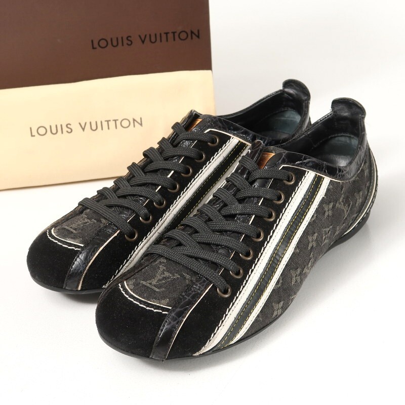 | GS5160*イタリア製 LOUIS VUITTON ルイヴィトン モノグラムデニム ローカットスニーカー レザー切替 Size 35 靴 ブラック | |||