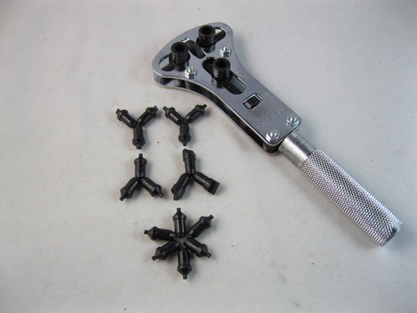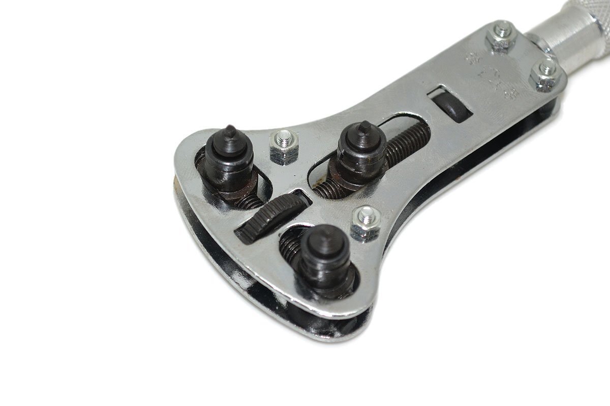 作業方法としては、腕時計の裏蓋の溝に合わせて、工具の爪の幅を調整します、その後に溝に爪を合わせて反時計方向へ回していただけますと外れます。
