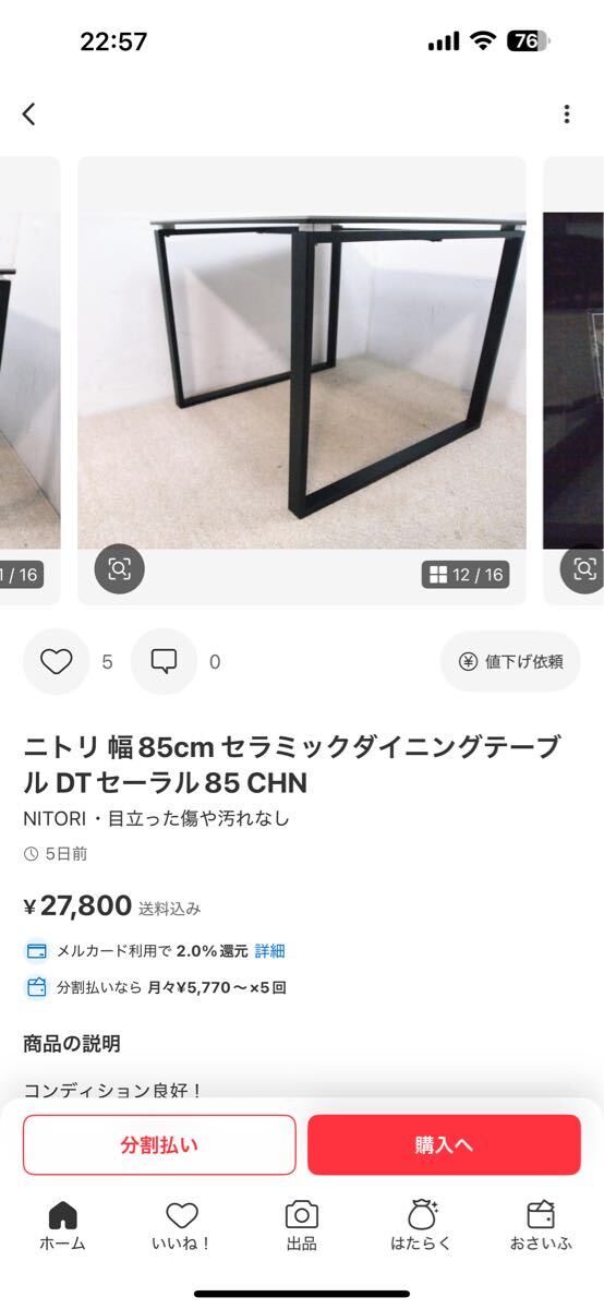 ダイニングテーブル 大理石調 セラミック 強化ガラス 85cm幅! [浏览原始页面]