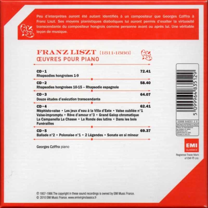 ☆[2,6,12,15]1956. 8 ブダペスト・フンガロトン スタジオ,[31]フランス・サンリス・リスト・オーディトリアム,[32]1968. 1 パリ・スタジオ・バークレイ・オシュ,[それ以外]1957~77年 パリ・サル ワグラムにおける録音。(P) N. ガムソン, R. シャラン, E. マクレオー, L. ベック、(E) P. ヴァヴァスュール, T. ガリア, S. レミ, D. ミシェル, G. ベラ。