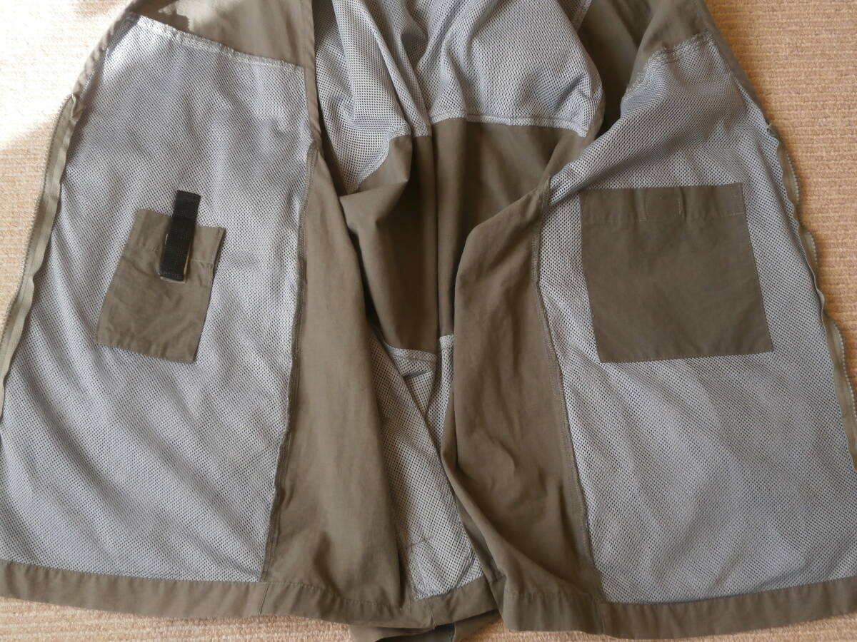サイズは身幅60cm、着丈70cm、肩幅50㎝くらいでサイズのたぐないですが、XLくらいです。色はカーキーでポケットは全面左右に4個、再度にそれぞれ1個ずつ、内側に左右1個、背面に大1個です。画像5で補修、画像6でひっかき傷アリです。色変わりもありますが、カーキー色ですので目立ちません。| 出价者 | 信用 | 价格 | 时间 |