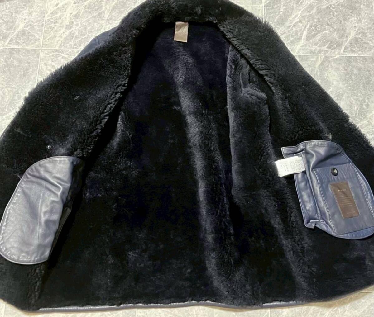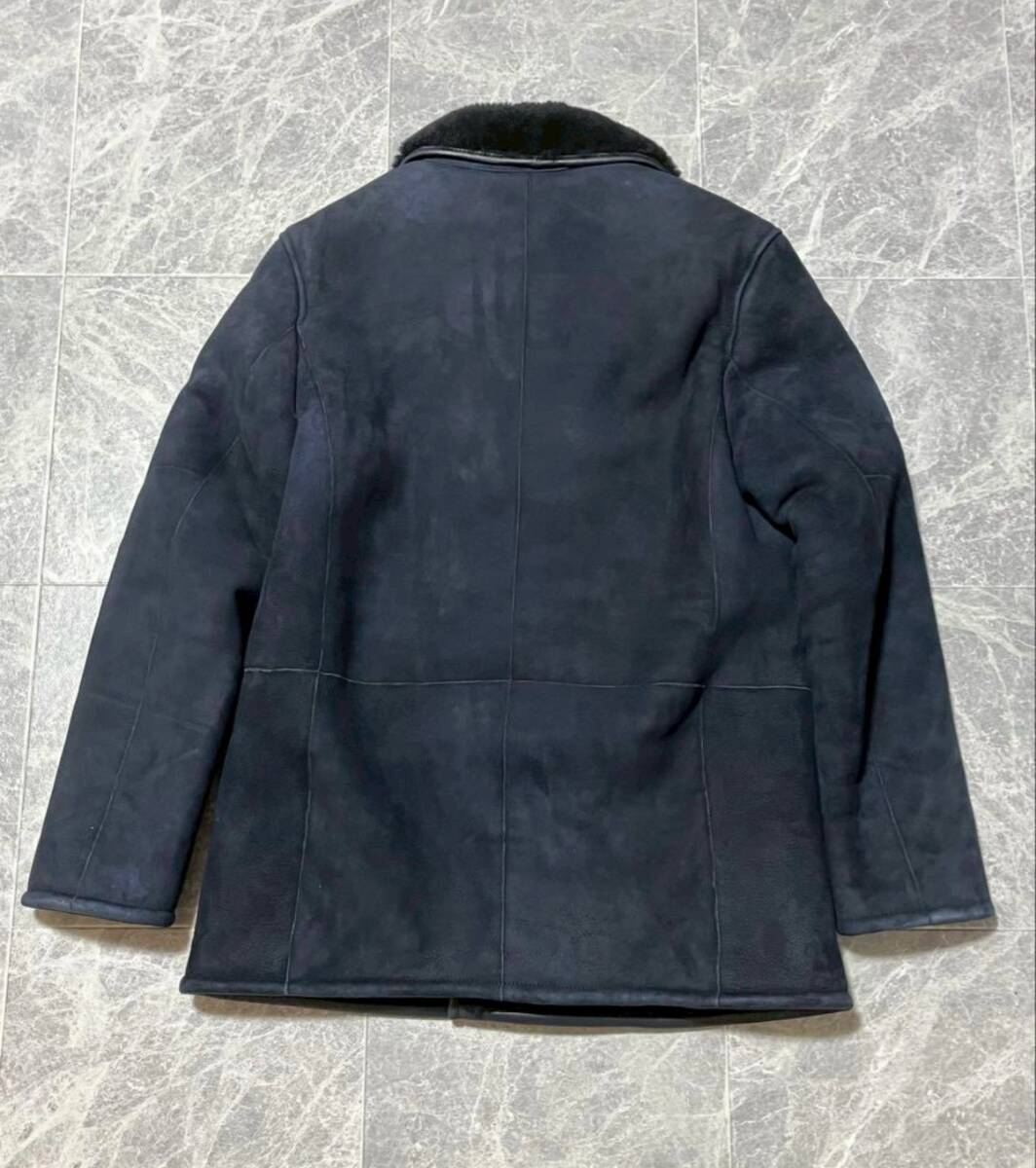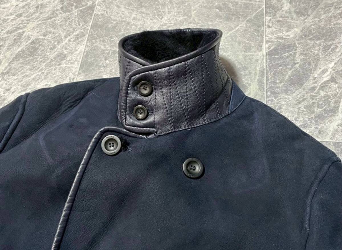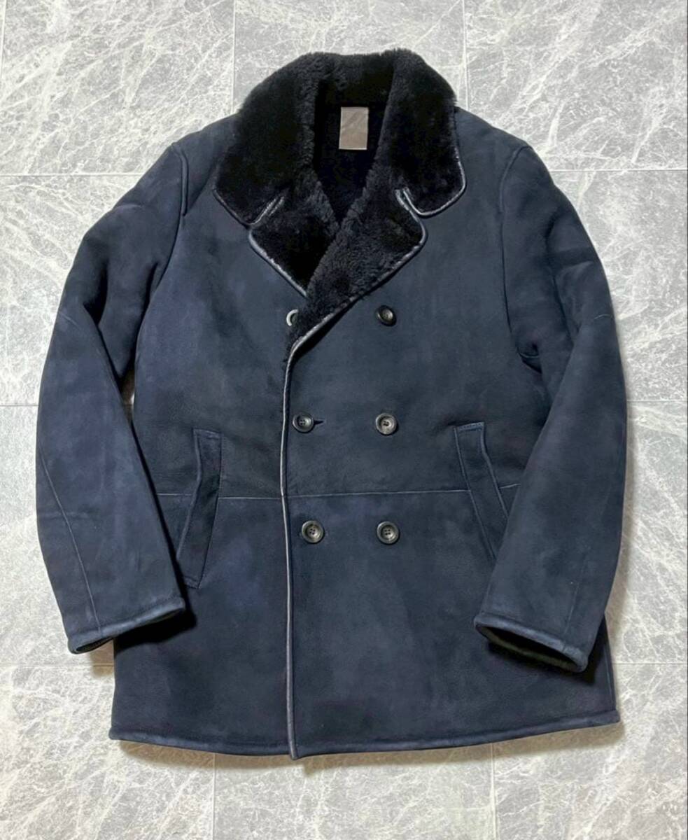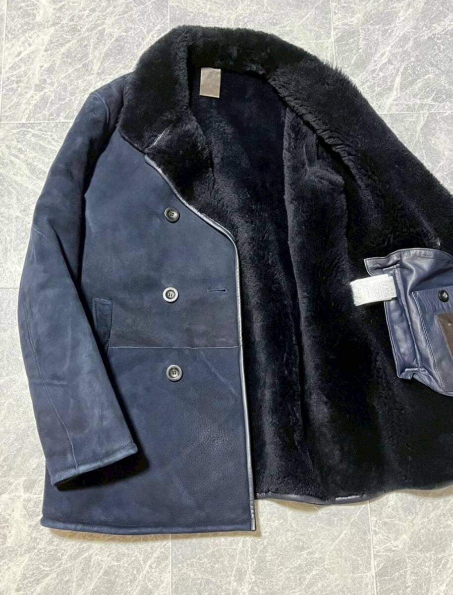 商品名: 定価約33万円 RUFFO Mouton Shearling Fur Pea Coat ルッフォ ムートン 羊革 レザー シアリング ファー ピーコート サイズ48 ネイビー