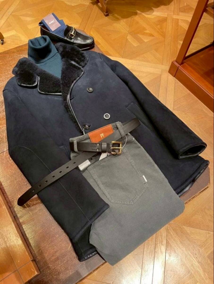 ルッフォの上質な肉厚ムートン素材を使用した、大人のためのピーコート。