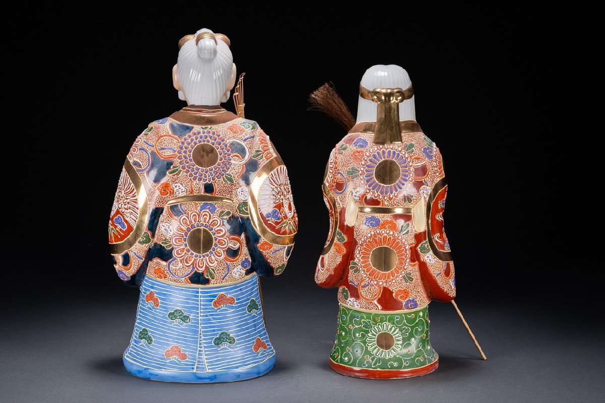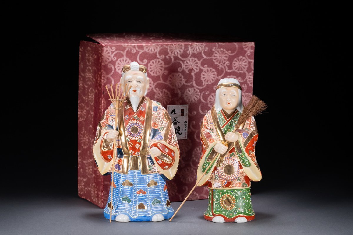 【雲錦】某有名オークション購入 時代物 九谷焼 高砂夫婦造像 古置物 古擺件 古美術 時代コレクション7L10-85S02