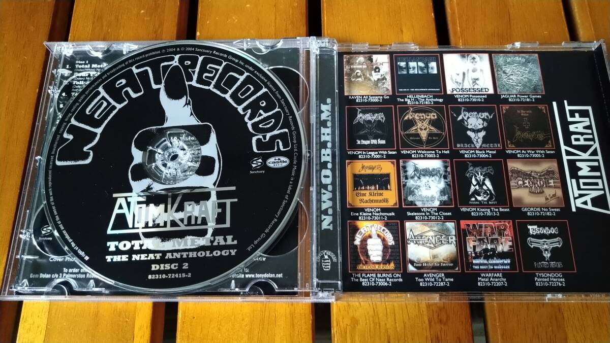 【入札される前に、必ず自己紹介文をご確認ください】ATOMKRAFT「Total Metal・The Neat Anthology」(輸入盤・82310-72415-2)です。ケースとディスク面に擦れ傷がありますが、再生には問題ありません。発送方法は、ゆうメール(190円)です。CD2枚以上の場合は枚数によって送料が変わりますので、落札後のやり取りの際に詳細をお伝えします。よろしくお願いします。