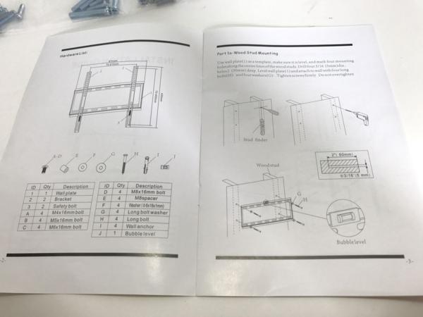 | 色・サイズ・重量 | つや消し黒 壁取り付け金具 200mm x670mm テレビ取り付け金具 430mm26mm 約3.2Kg |