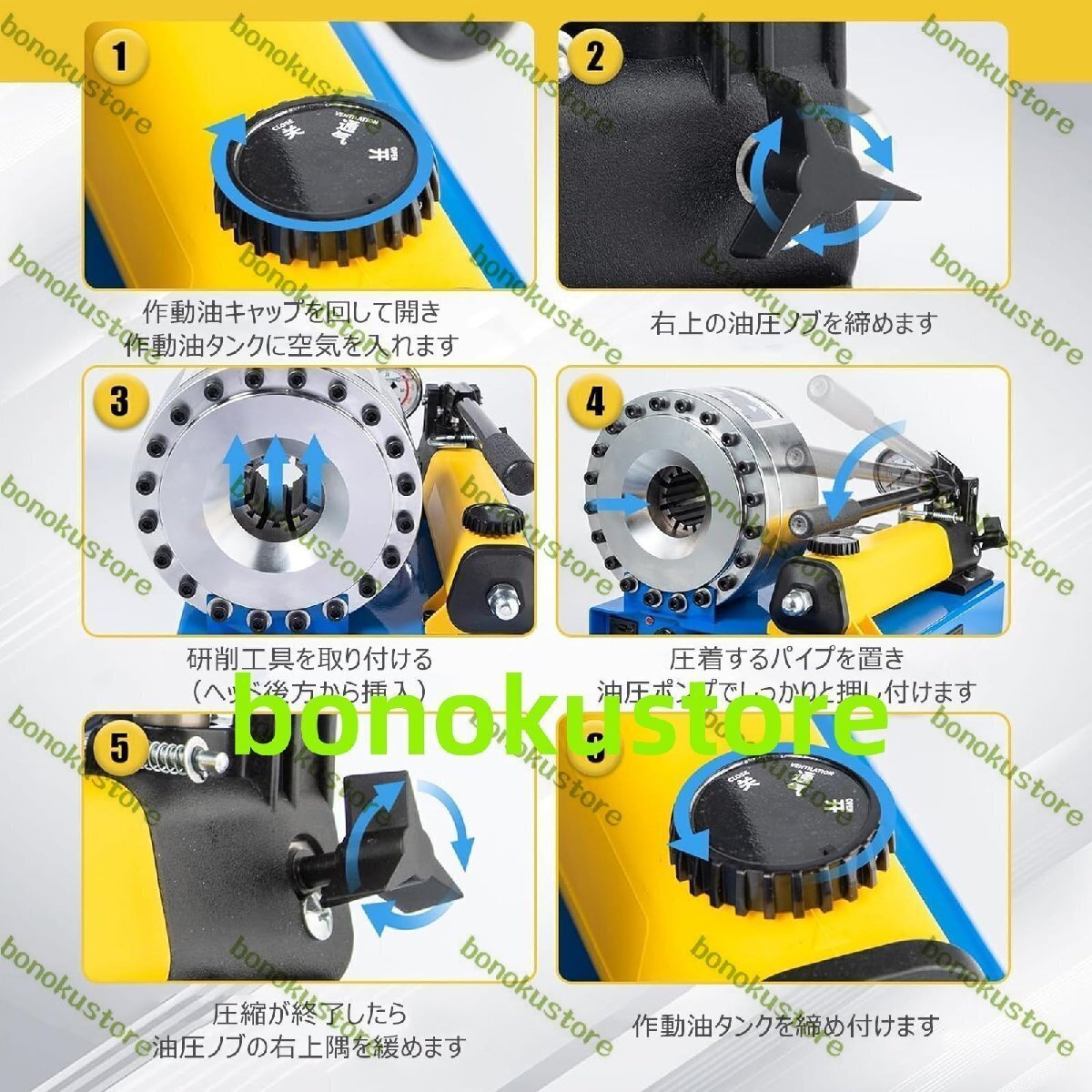 【複数のサイズ】油圧ホース圧着工具、8つのダイスを装備。モールドサイズ範囲:10/12/14/16/19/23/27/30mm、最大開口部(モールドなし):(48mm)。100R7~100R2のデュアルコアホースに適合します。精密圧着:油圧ホース圧着機は、1/4 インチから 1 インチの 1&2 ライン
