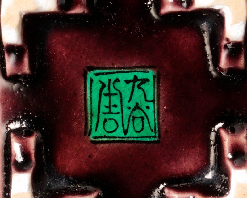 【初代徳田八十吉】 古九谷写、吉田屋写、赤絵技法などの伝統の技法を研究し独自に深厚釉を創造。門下にも、二代、三代八十吉を育てると共に浅蔵五十吉などにも指導し近代九谷上絵釉薬の第一人者とされた。氏の作品は洗練された発色技術と精密なる絵付けにより高い評価を得、現在市場においても高額にて取引がなされている。また、落款により初代、二代の作品の見分けは八と十がつながってれば初代、離れていれば二代の作品と分類できる。(箱書きの印には初代、二代とも同じ印が使用されている物もある) |