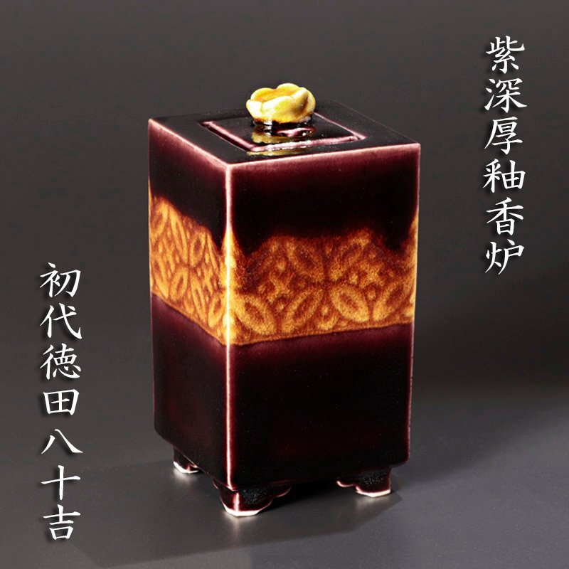 | 【古美味】初代徳田八十吉 紫深厚釉香炉 茶道具 保証品 |