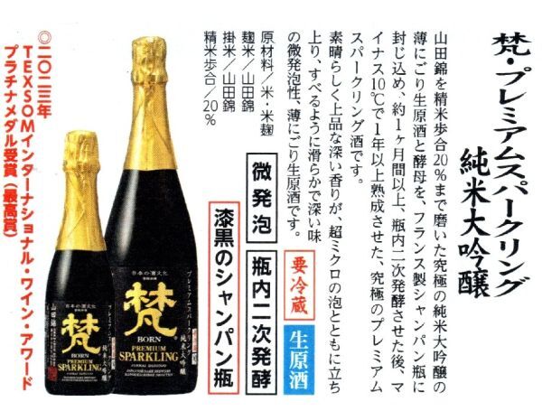 梵 プレミアムスパークリング 純米大吟醸 375ml 4950円(即決) |