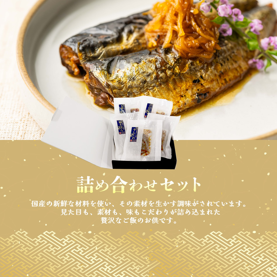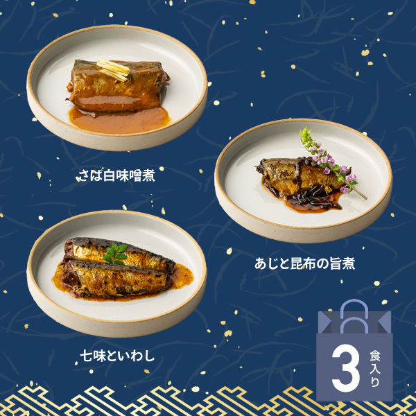 | 内容量 | 【各1袋づつ】 白さば味噌煮、あじと昆布の旨煮、七味といわし |