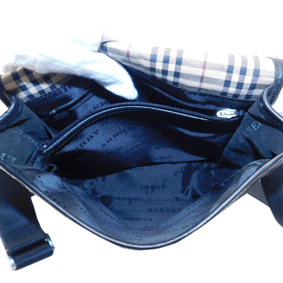 1円■バーバリー/ショルダーバッグ /ブラック系/ナイロン×レザー/おでかけ/普段使い/BURBERRY ■E.Ble.tI-12[中古]