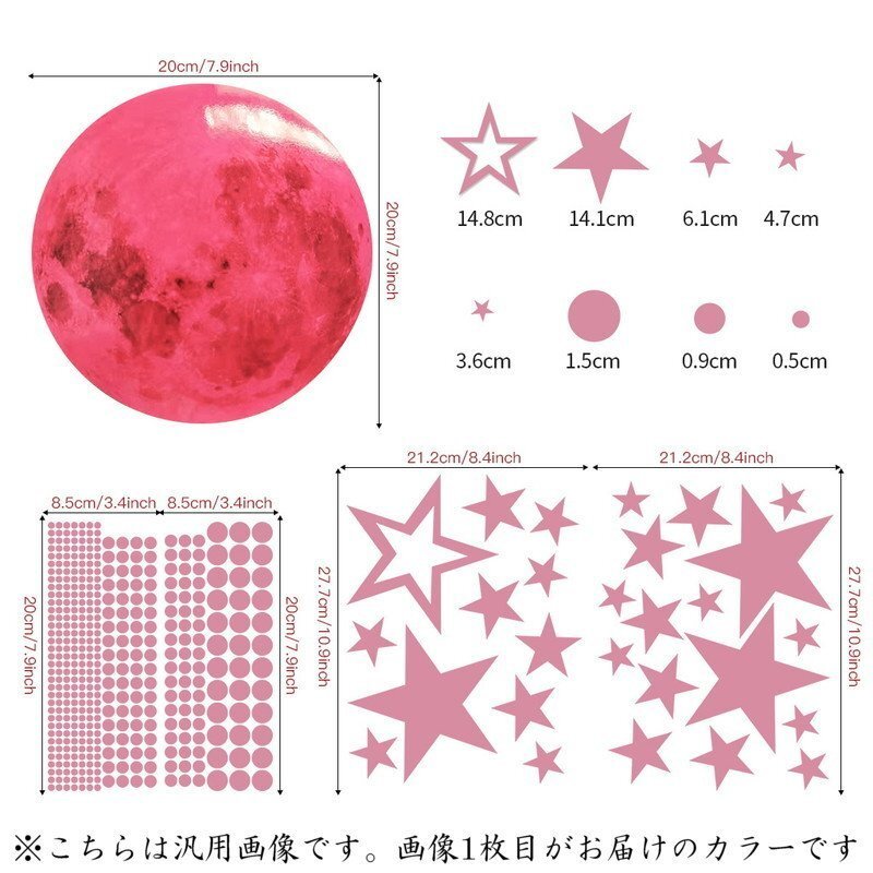 暗闇で光る☆蓄光 435ピース 星 set ピンク 20cmムーン 月 宇宙 惑星 ウォールステッカー 壁 天井 シール リメイク DIY
