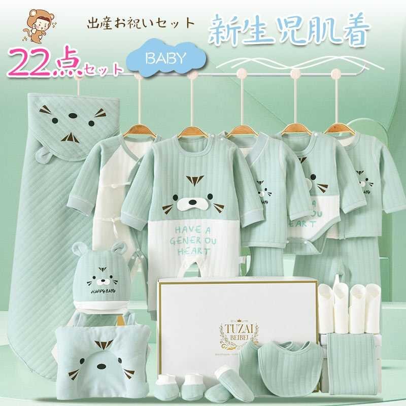 ベビー服 出産祝い 22点 ギフトセット 男の子 女の子 新生児 服 赤ちゃん ベビー用品 出産準備 ベビー帽子 ☆6色/59/66cm選択/1点