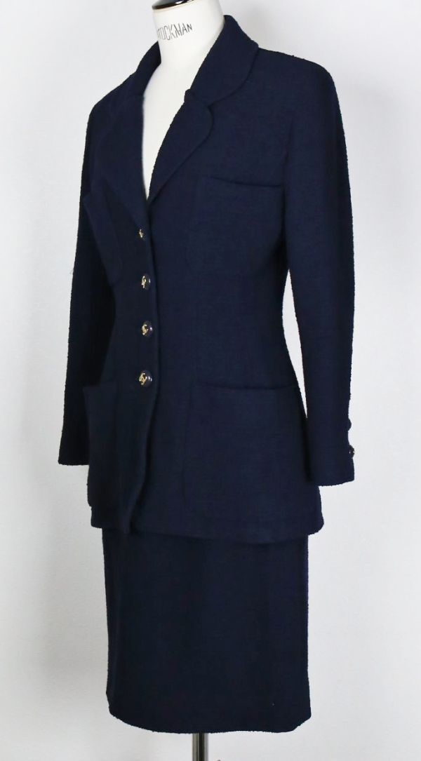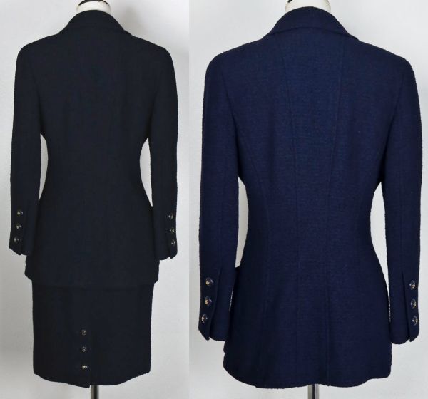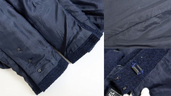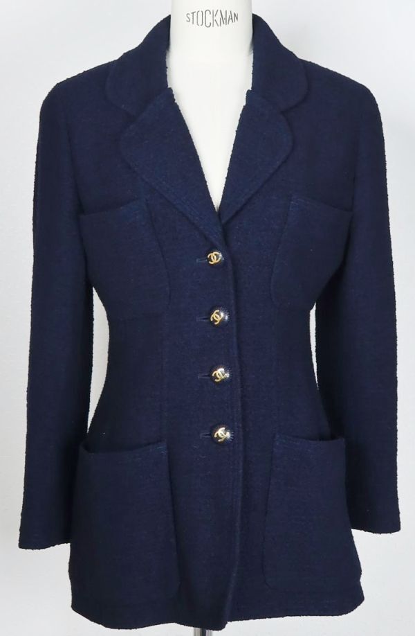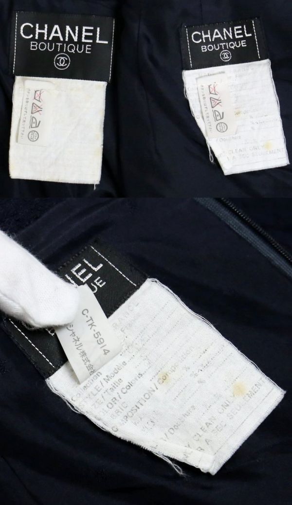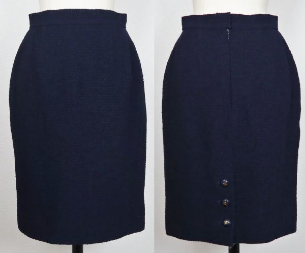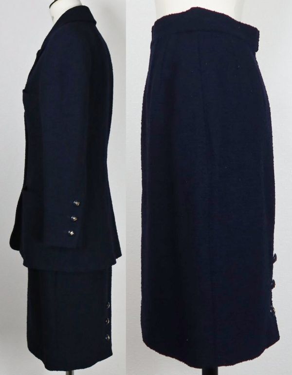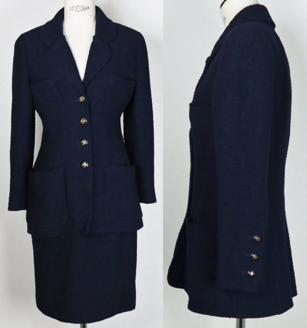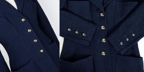 VINTAGE CHANEL coco buttons tweed jacket skirt suit size シャネル ココマーク ボタン ツイード ジャケット スカート スーツ <色> 紺系 <素材> 品質表記タグが薄れています。 <サイズ> 品質表記タグが薄れています。 <寸法> 全長54.5(スカート)肩幅39.5(ジャケット)身幅44(ジャケット)着丈70.5(ジャケット)袖丈56(ジャケット)ウエスト62(スカート)(単位:㎝) <商品状態> スカートウエストフォックの留め直し、スカート裏地にツレがございます。多少の着用感があり左袖先の押さえボタン(内側)が欠損していますが綺麗なお品です。 ■支払方法 YAHOOかんたん決済で落札価格+送料をお支払いください。 ■発送詳細 佐川急便、送料全国一律900円