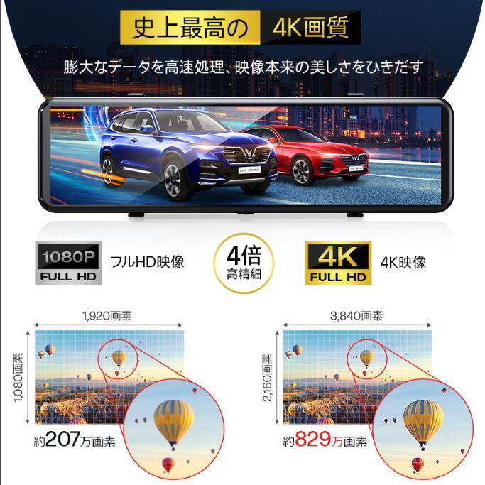 【4K高画質 ドライブレコーダー 前後カメラ】このミラー型ドライブレコーダーは、前後両方のカメラで撮影できることに加えて、フロントカメラは4K高画質(3840*2160)での撮影に対応しています。これにより、鮮明な映像で事故や細かい道路の状況を記録することができ、ドライブや旅行の思い出を記録するのにも適しています。リアカメラはFullHD(1920x1080)での撮影に対応しており、前後カメラでそれぞれ異なる解像度で撮影できるため、運転中の様子を全て記録することができます。| 出价者 | 信用 | 价格 | 时间 |
