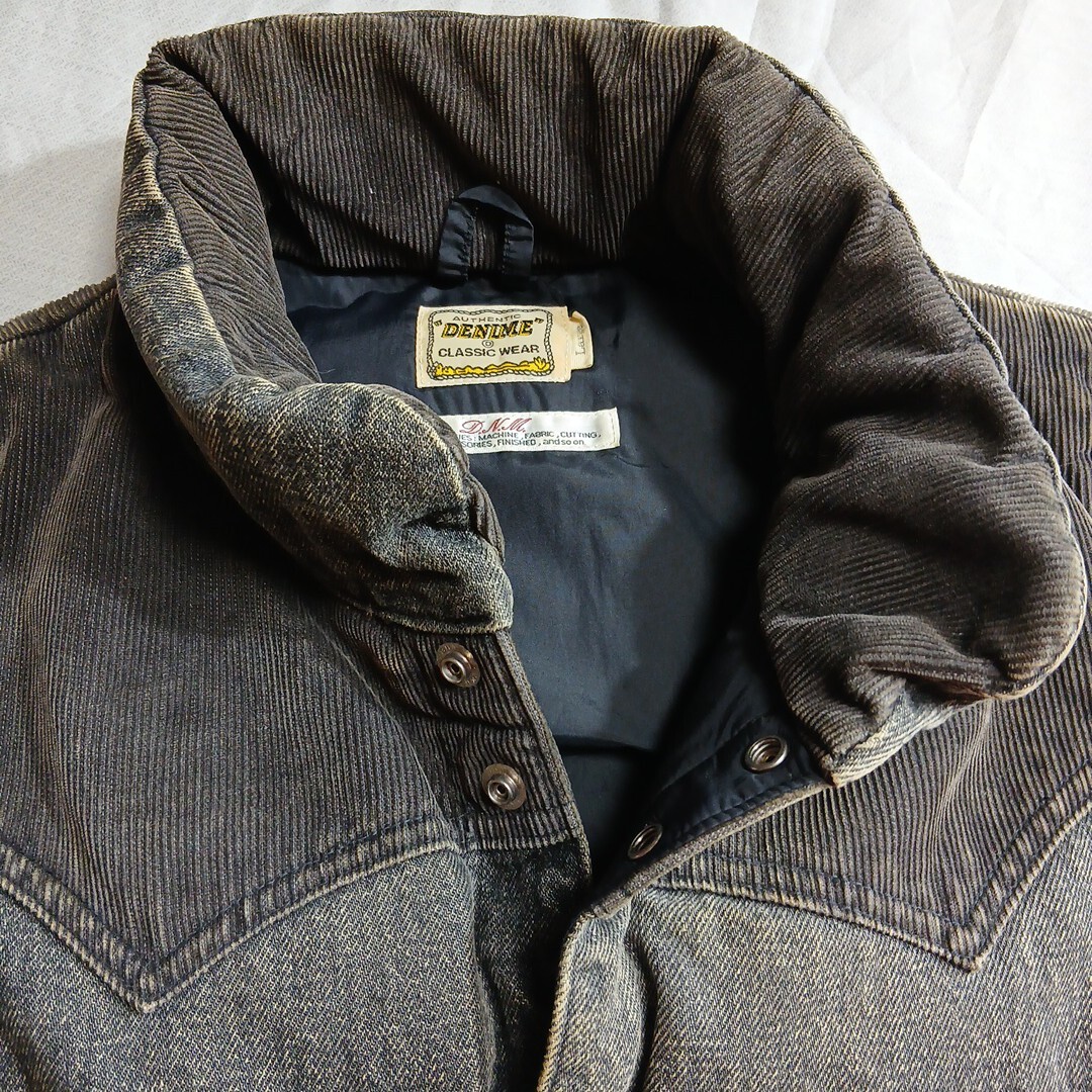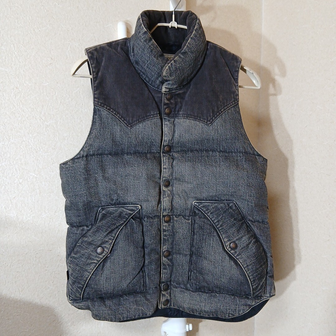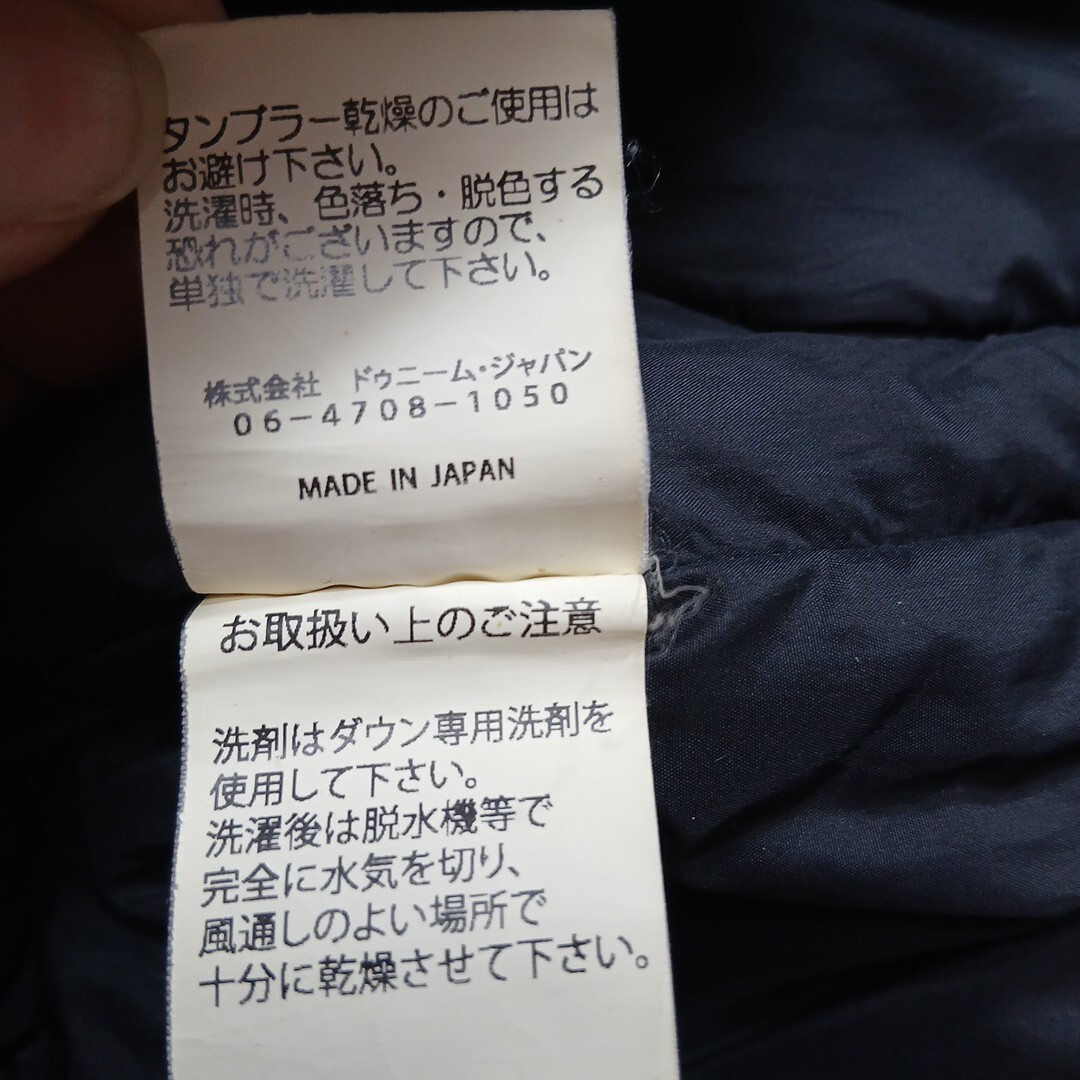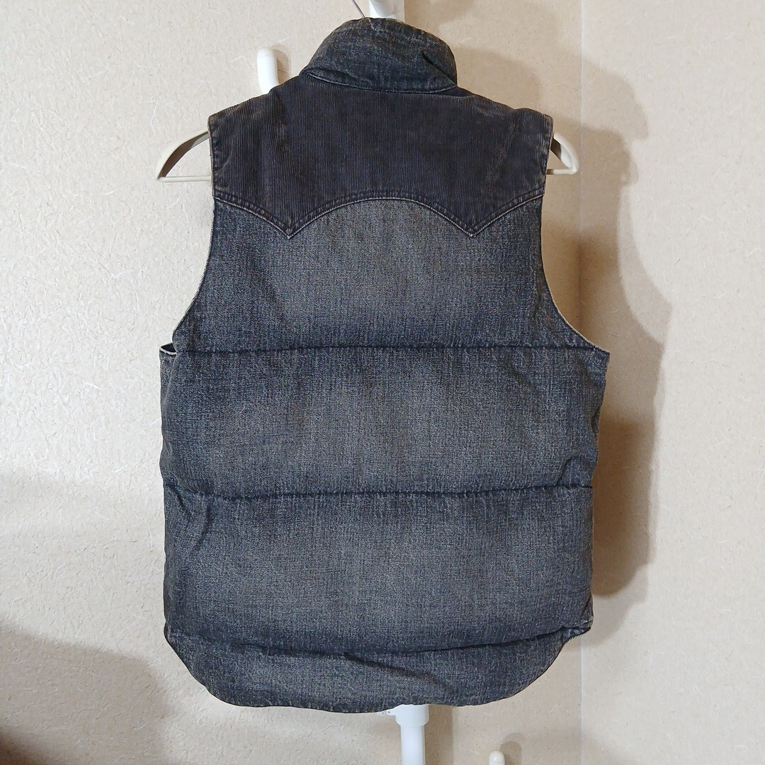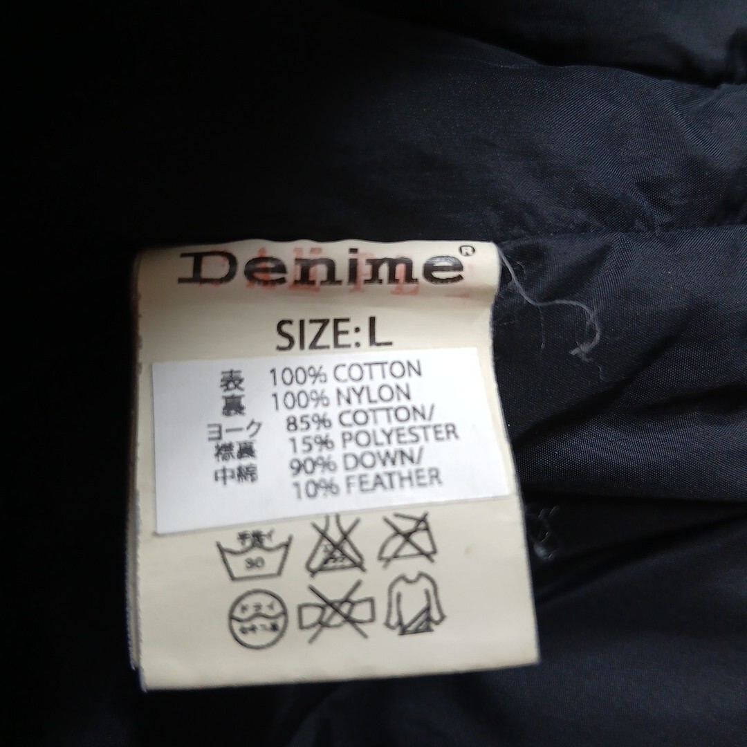 ドゥニーム(ドゥニームジャパン)のダウンベストです。サイズはLで、実寸でおおよそ肩幅36センチ、身幅51センチ、着丈65センチです。素材は、表地がコットン100%で、裏地がナイロン100%で、ヨーク襟裏がコットン85%、ポリエステル15%で、中綿がダウン90%、フェザー10%です。色は、グレーです。元々のユーズド加工です。多少使用感などございますが特に目立つキズや汚れは無いと思います。