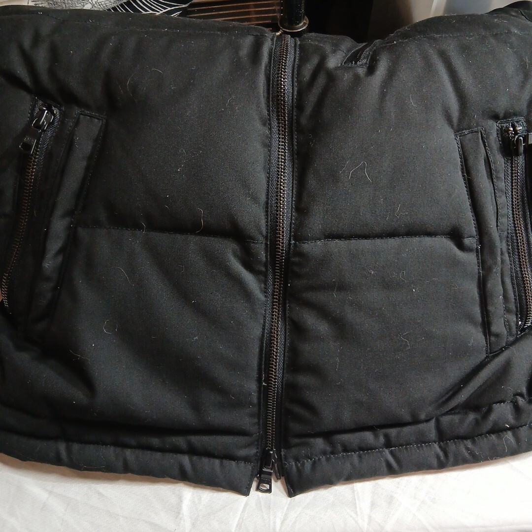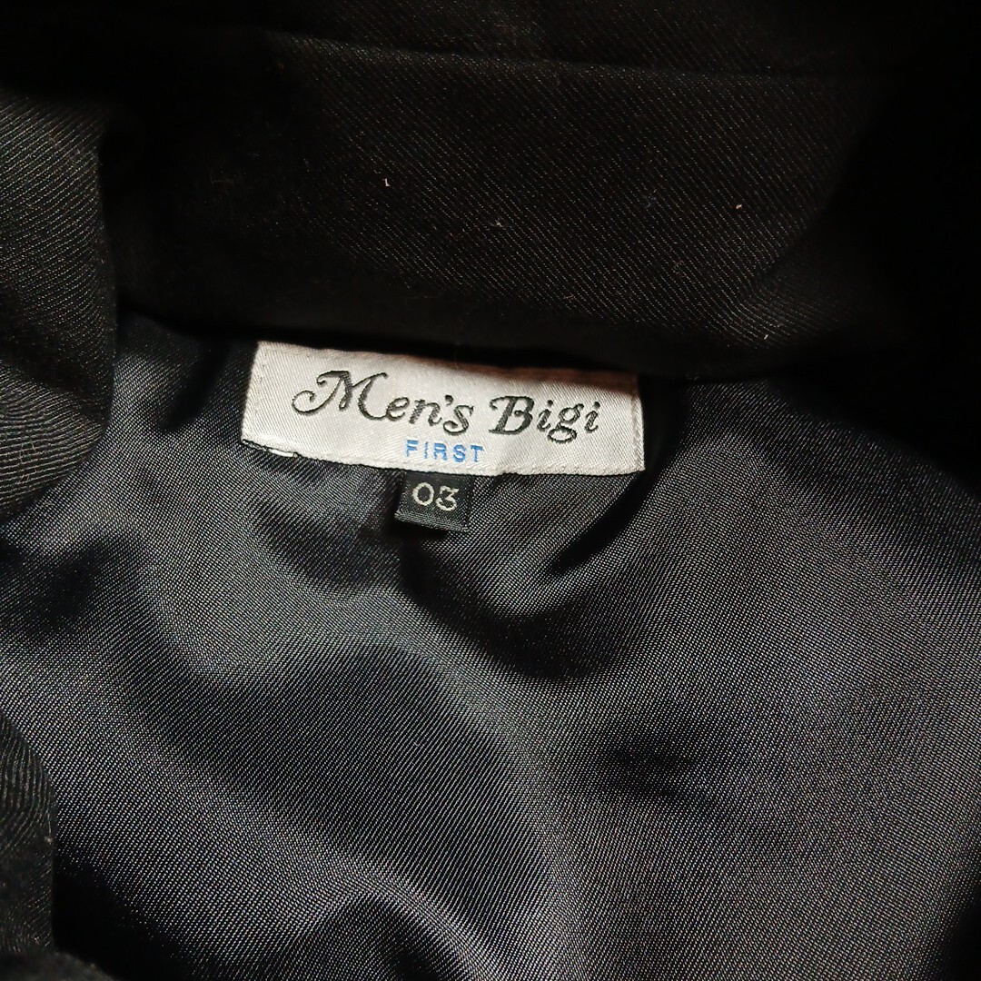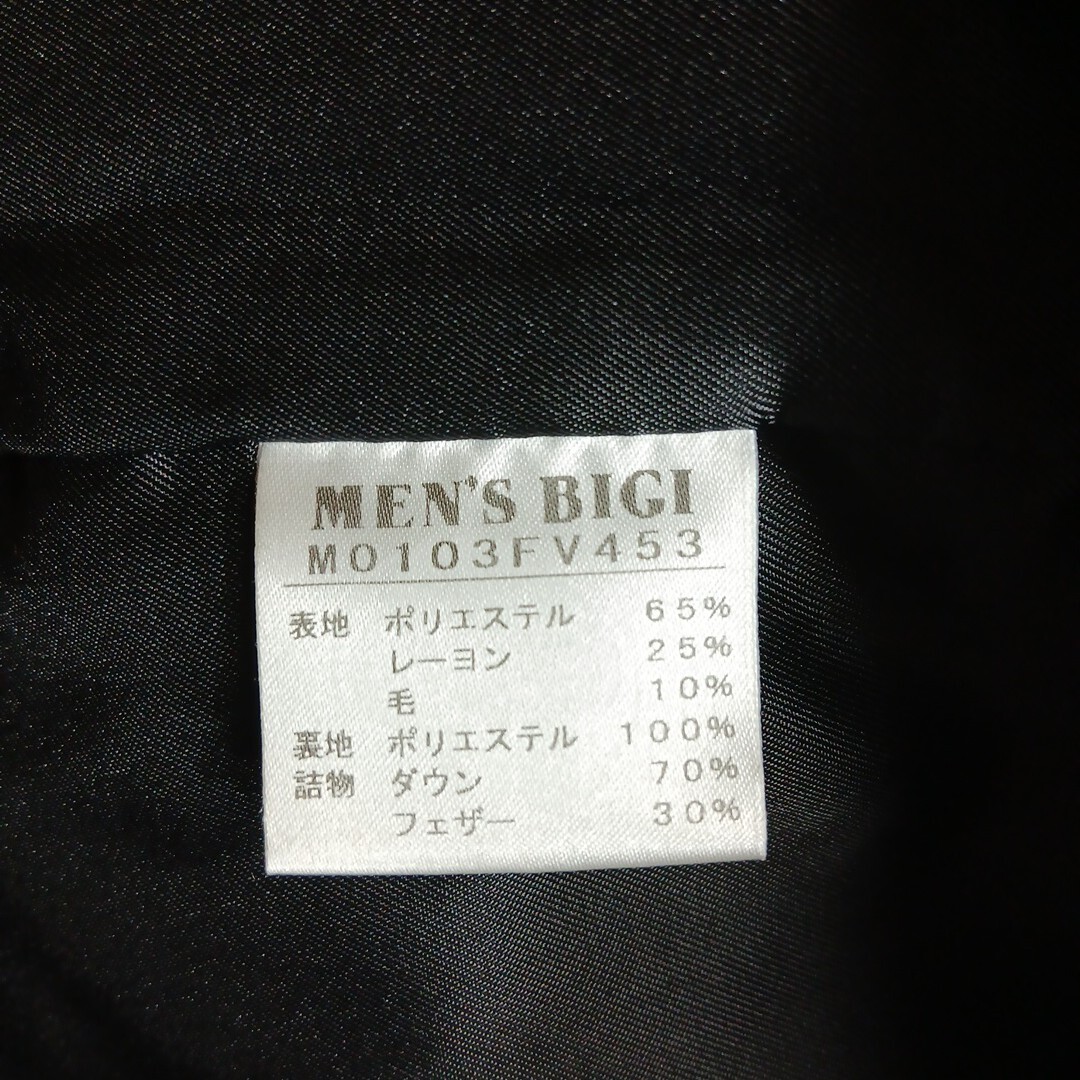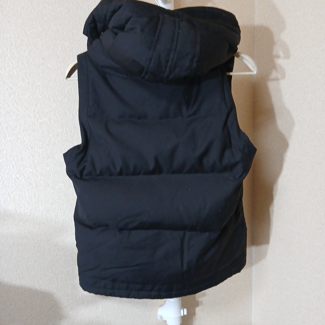 メンズビギのダウンベストです。サイズは03で、実寸でおおよそ肩幅38センチ、身幅49センチ、着丈60センチです。素材は、表地がポリエステル65%、レーヨン25%、毛10%で、裏地がポリエステル100%で、詰め物がダウン70%、フェザー30%です。色は、黒色です。フードは取り外しが出来ます。多少使用感などございますが特に目立つキズや汚れは無いと思います。