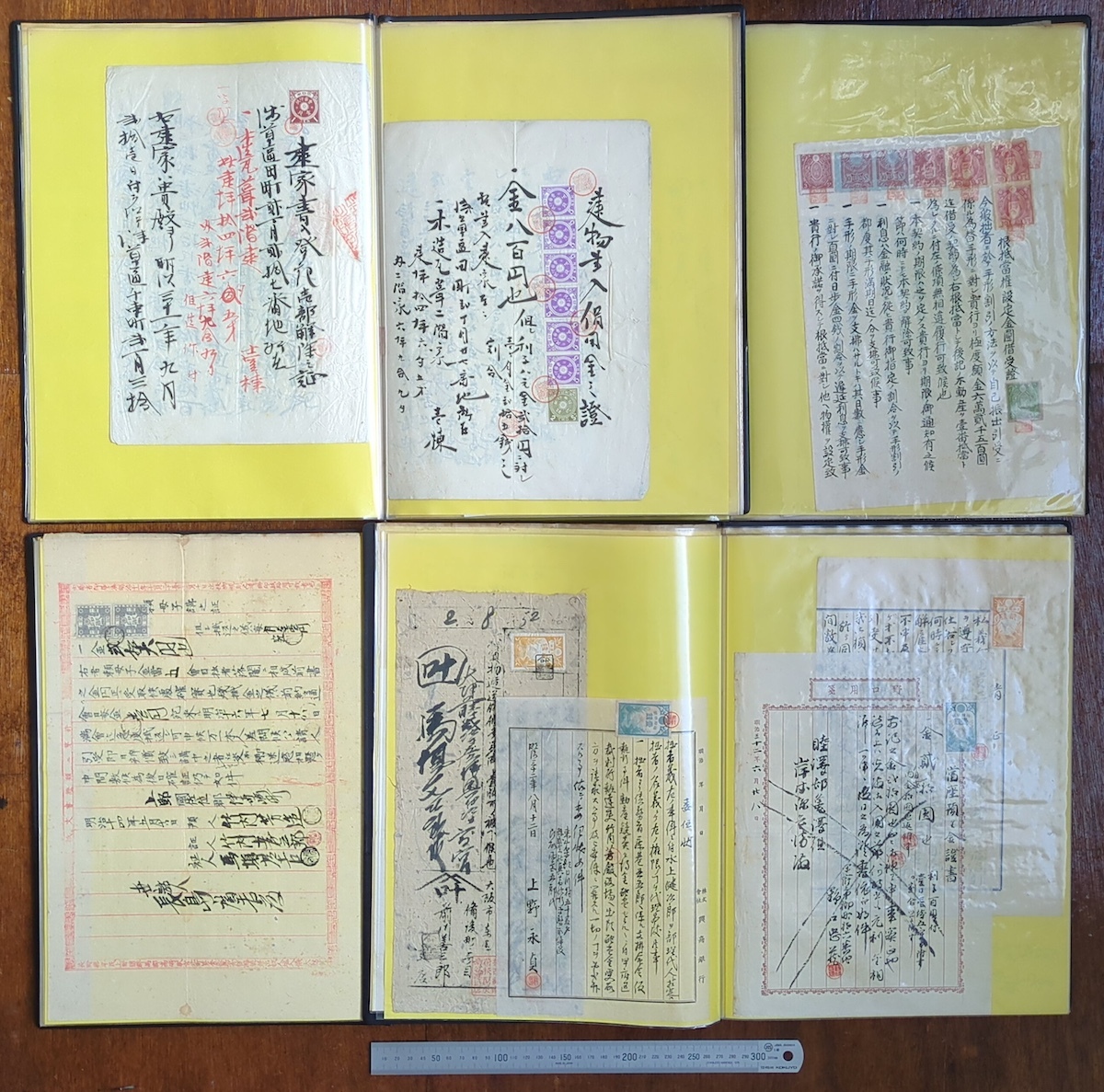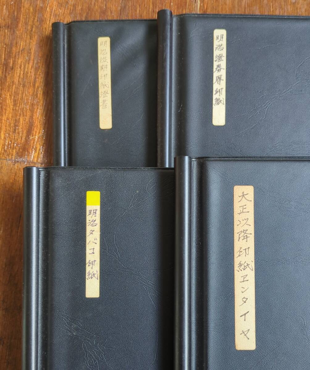手彫印紙 コレクター放出 印紙 218枚 手形 株券 煙草印紙 含む 大量一括まとめて ファイル4冊 明治期 大正 戦前 タバコ 古文書(検 藩札