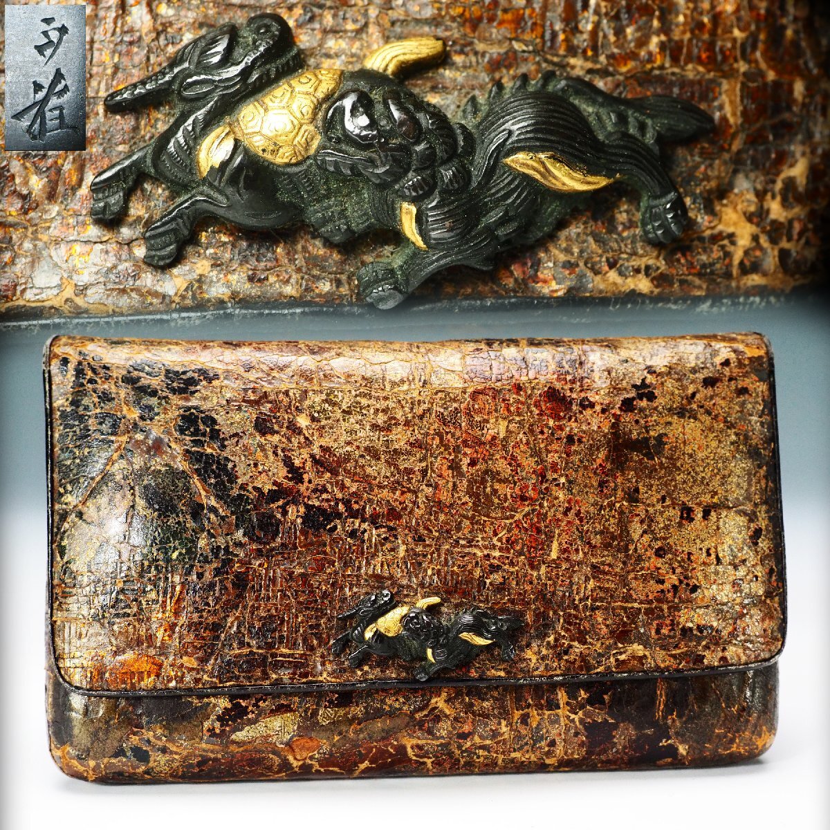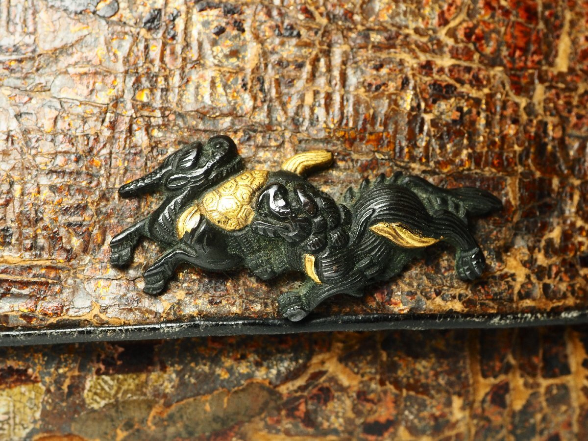 | 《サイズ》 大きさは 幅 12.2cm ・ 高さ 2.9cm ・ 奥行 7.5cm ・ 重さ 46g 【※計測サイズは最大径で計測しております(例;茶釜であれば、幅は鐶付の先から鐶付の先まで、高さは底面から摘みの先までとなります】 | |||