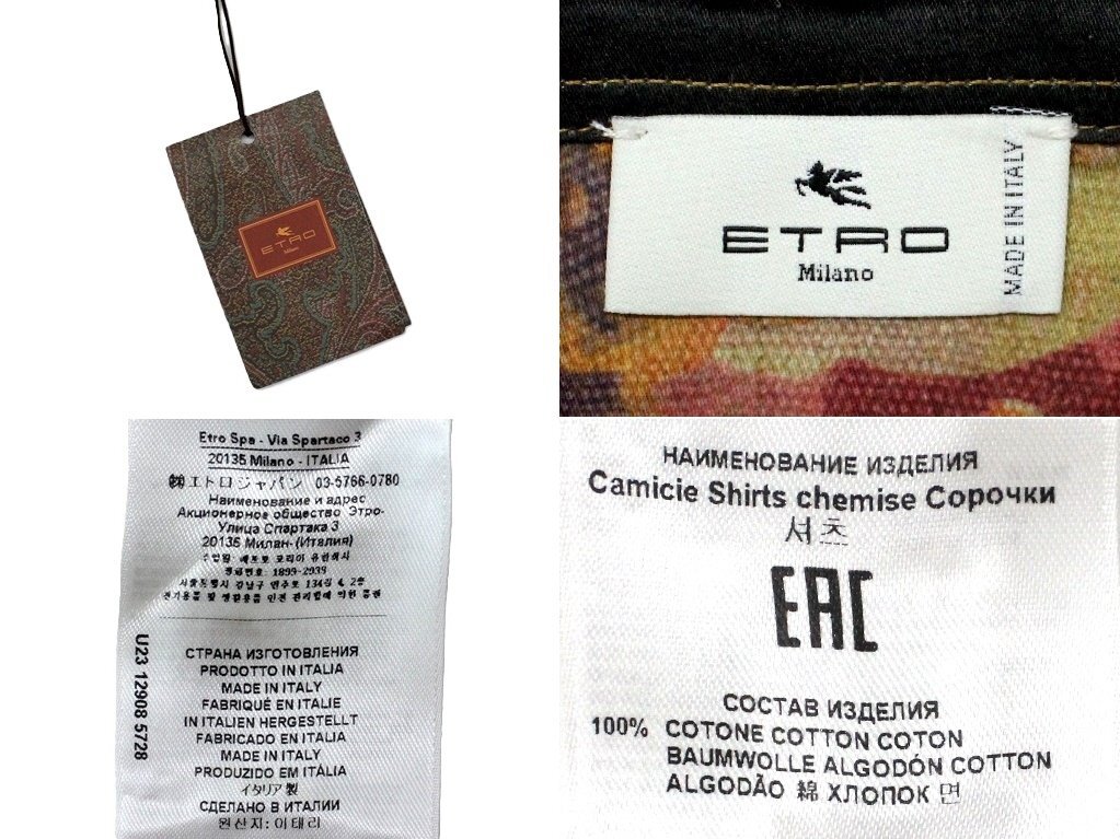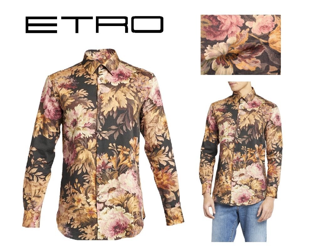 ●11万新品◆エトロ◆39=S~M◆イタリア製 大柄フラワーモチーフ 上質コットン100%シャツ オレンジ系マルチカラー【ETRO】 1円 [浏览原始页面]
