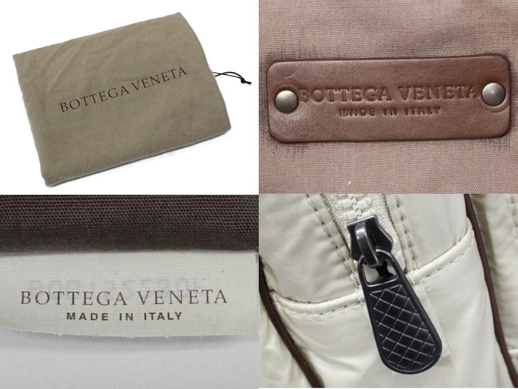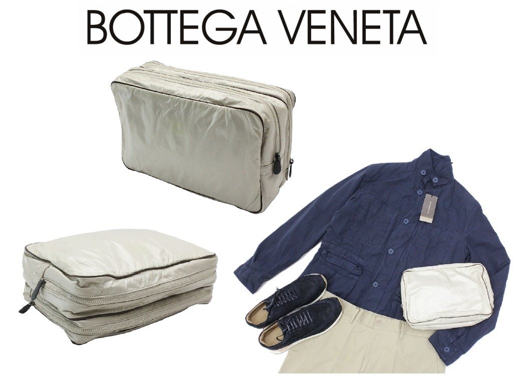 16万新品◆ボッテガヴェネタ◆撥水加工ナイロン2ジップポーチ ベージュ×ブラウン