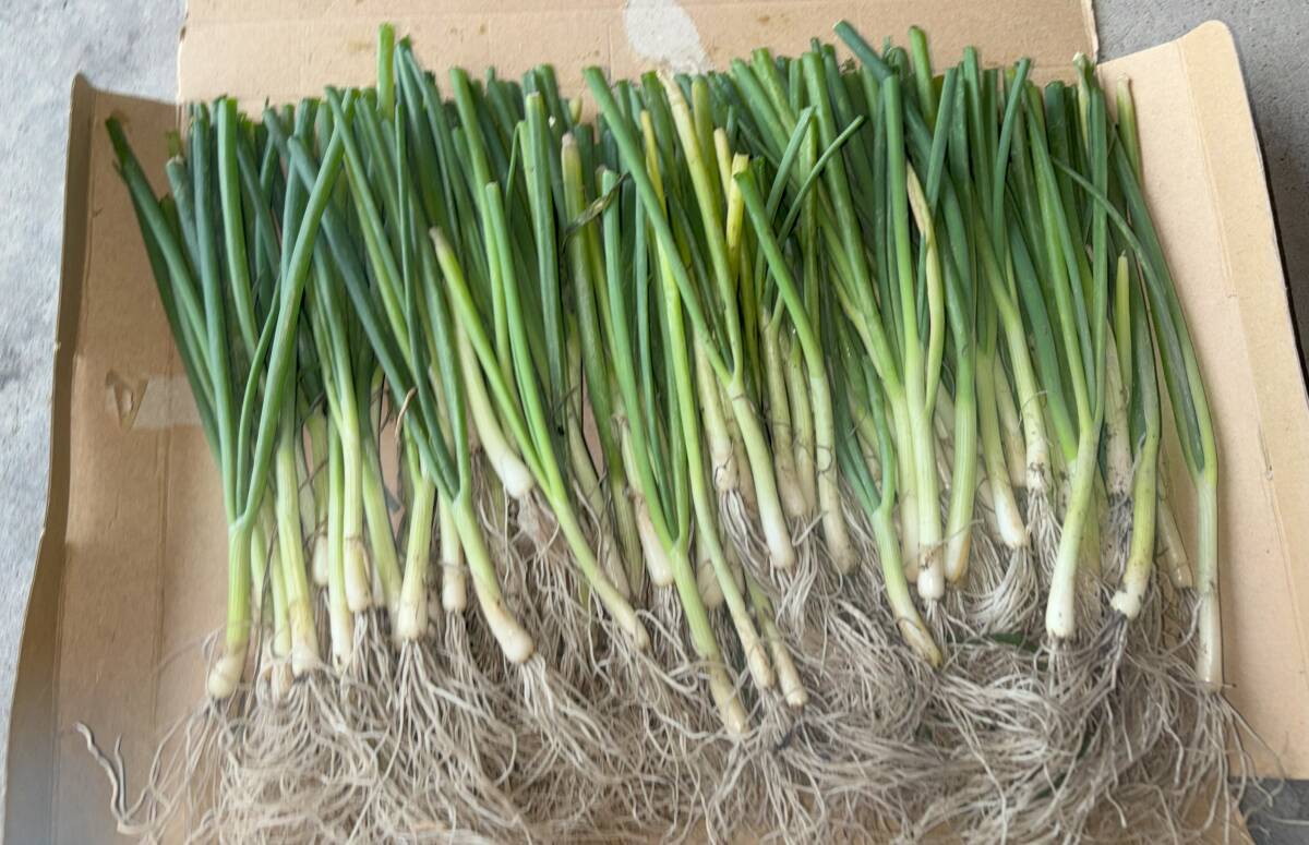 露地栽培で長さ太さは不揃い しっかりした苗にする為に葉切りして定植しています。