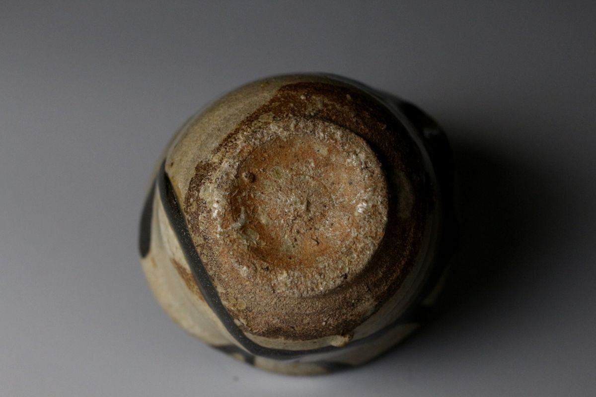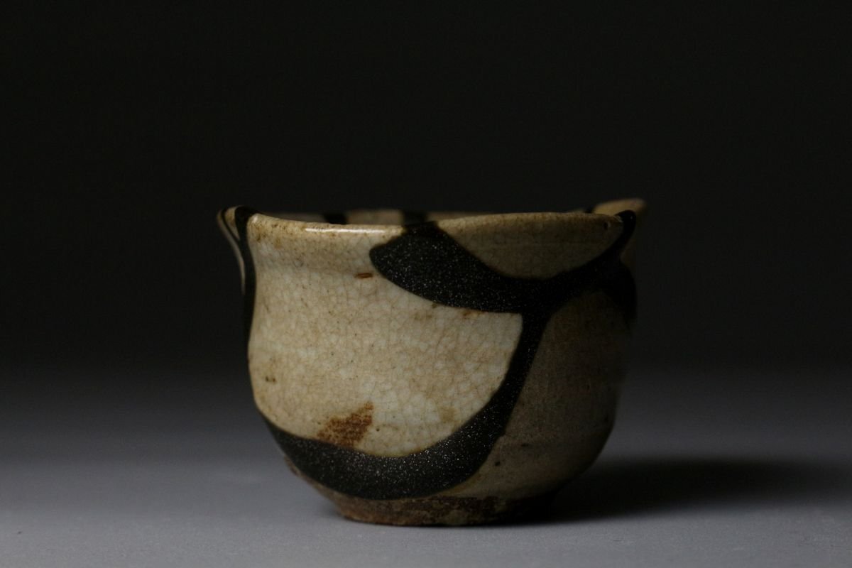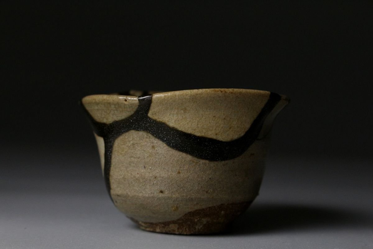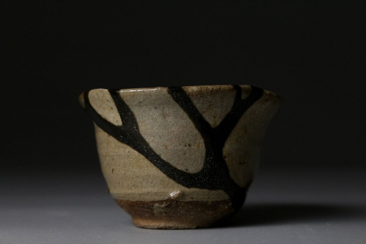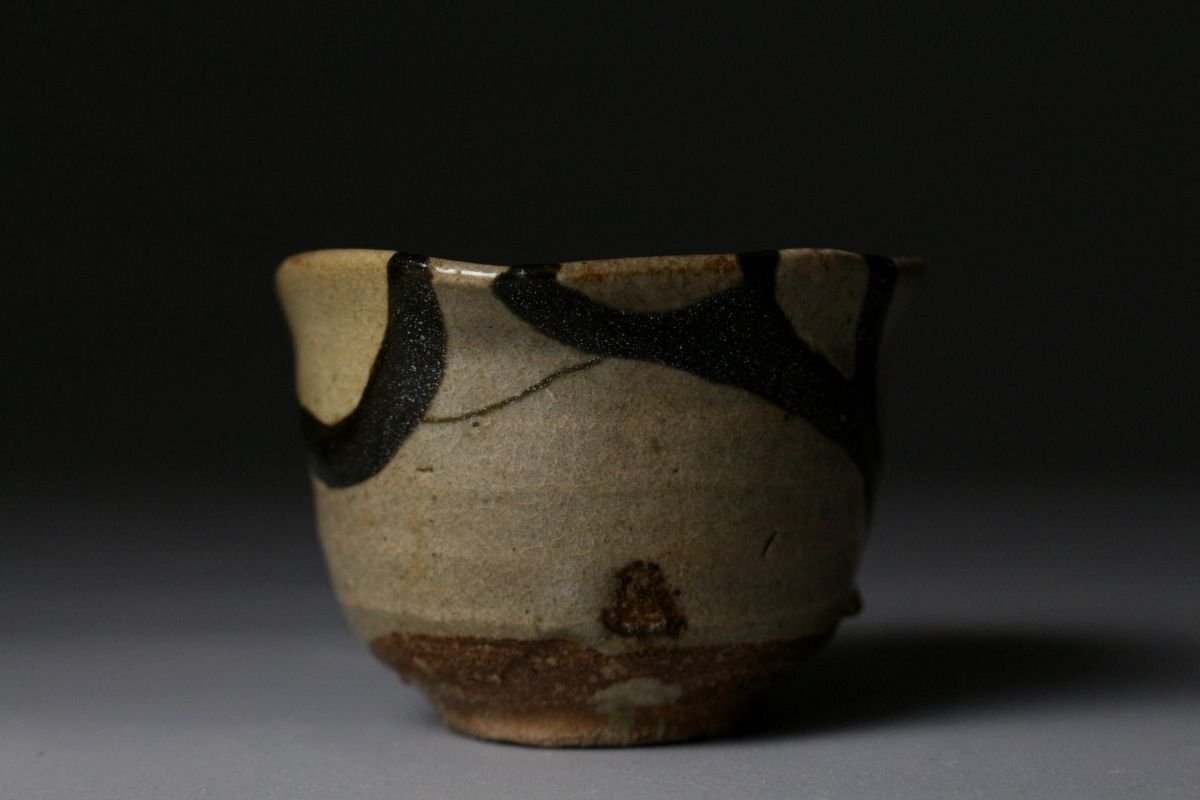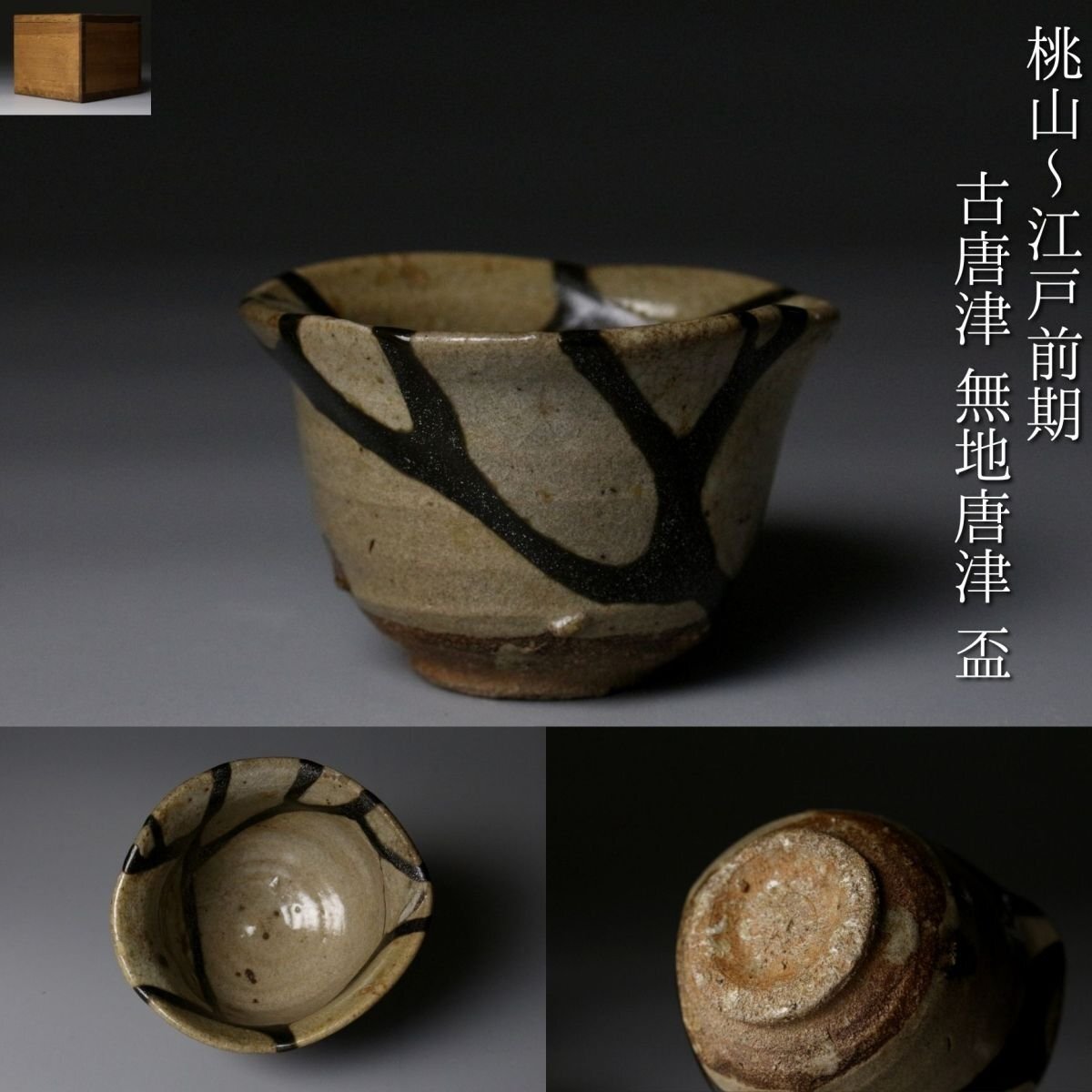 [.QU]25.11 25111724T* * * 商品詳細 * * * ここでしか出逢うことのできない唯一の美をご紹介させて頂きます。 本作は、素朴さの中に深い美を宿す「無地唐津」の盃です。古唐津ならではの温かい土味、柔らかく溶け込む釉調が、手に取るたびに穏やかな趣を感じさせてくれます。 また、本盃は呼続修理が施されており、その工程により生じたわずかな造形の歪みが、他には替えがたい独特の味わいとなっています。単なる補修ではなく、器が受け継いできた時間を可視化し、景色として昇華させたもの。 時代物の魅力をいっそう際立たせる要素です。 盃を傾けたときの手なじみの良さ、掌に吸い付くような柔らかい質感。静かに佇む姿の奥に、長い年月を経てきた器だけが持つ気品が息づいています。酒席においてはもちろん、飾って眺めるだけでも心を和ませてくれる逸品です。 ■商品内容/ 筒盃、箱 ■サイズ/横6.5㎝×高4㎝ 重量:83g 箱:横8㎝×高7㎝ ■状態/ 経年によるスレ、小傷、汚れ、直し 箱にスレ、傷、汚れがございます。 ※写真にてご確認、ご了承の上ご入札下さい。